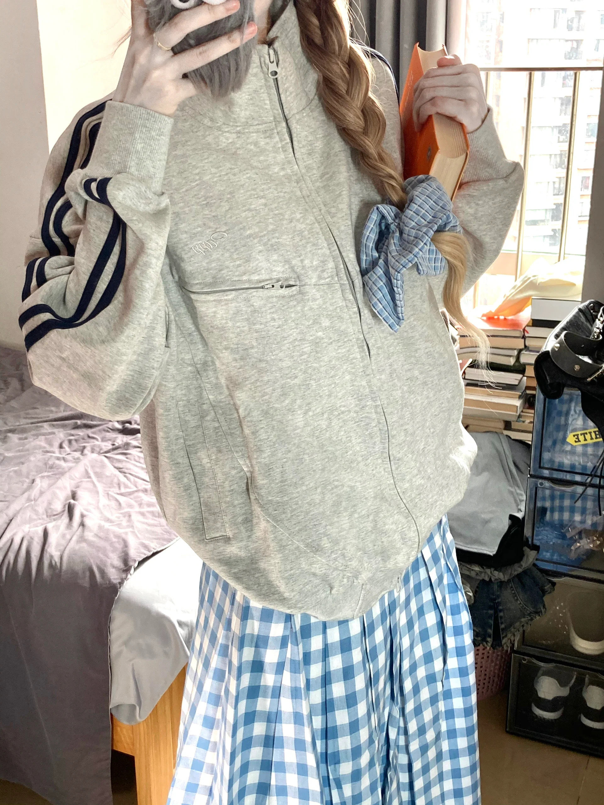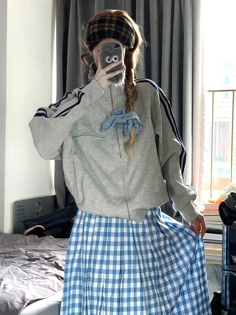 Лонгслив, толстовка с молнией, спортивная куртка, в американском стиле, свободный крой, для влюбленных