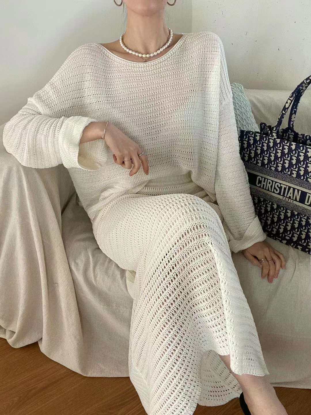 Южная Корея Dongdamen приобретает 24 Spring Venefit-P Hollow High-End Long Sweater Long 2,23