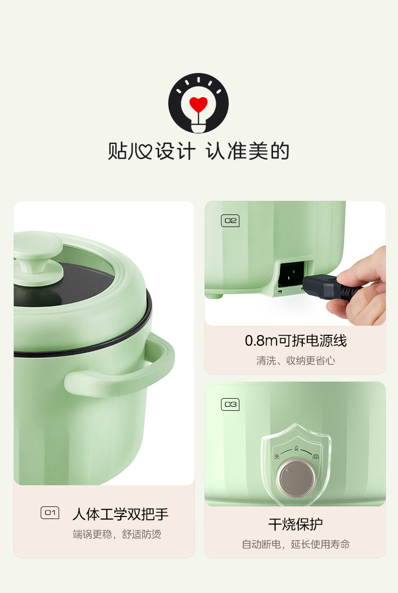 Midea Yun Duo Electric Wink Pot Mabrishing Multifunction Mini Pot Dormitory Student Student Pot -Frite -Fried Paking Electric Hot Pot