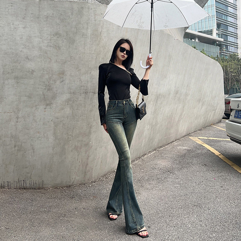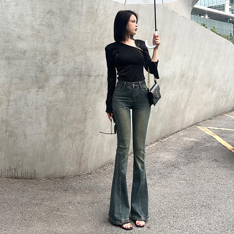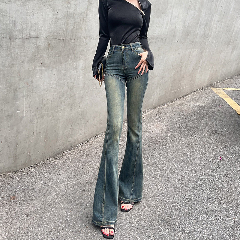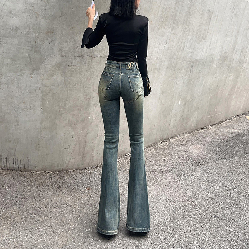 Ретро белье для коррекции формы бедер, мегафон, весенние джинсы, приталенные штаны, с вышивкой, высокая талия