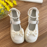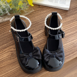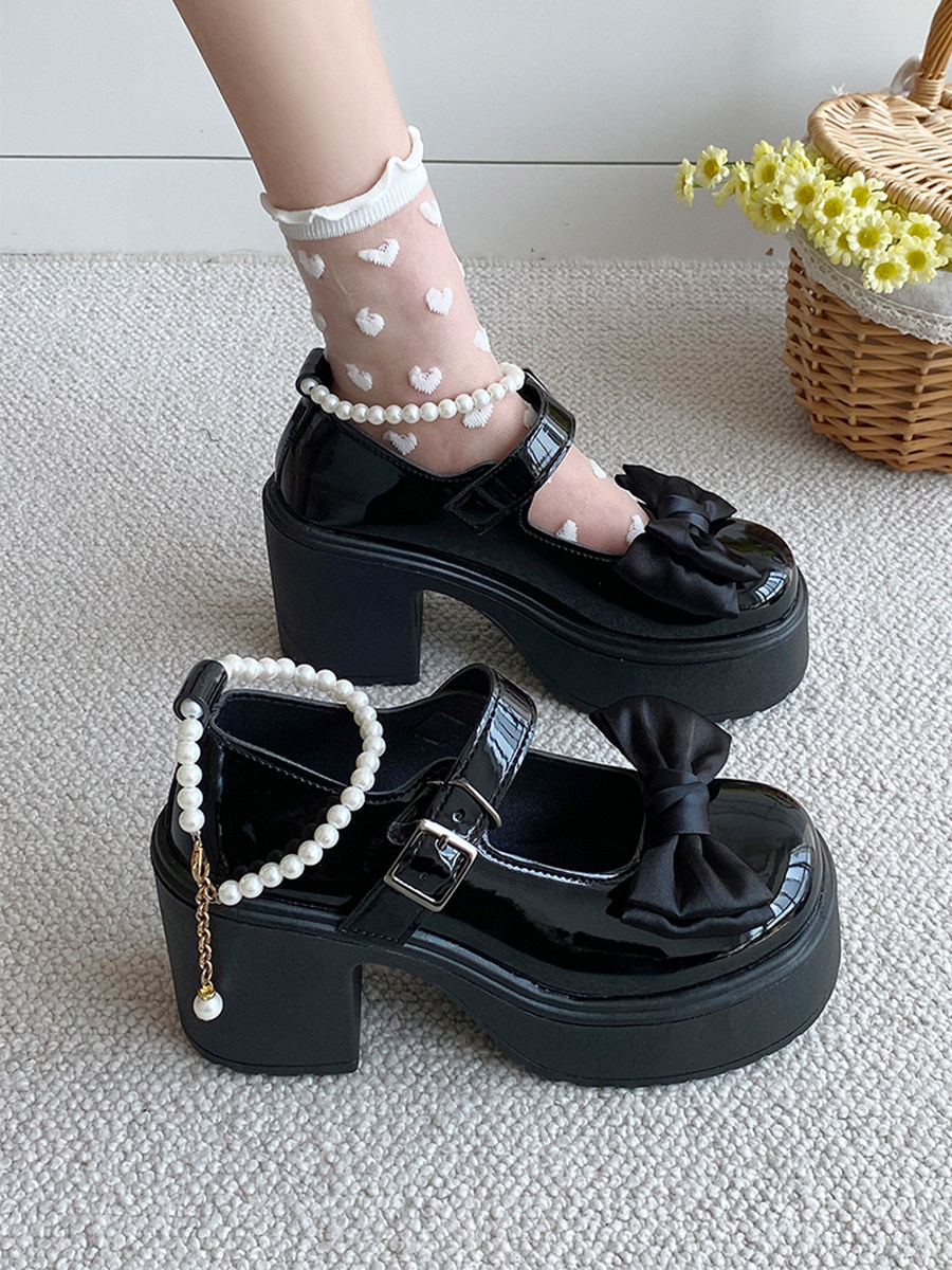 Униформа на платформе, ретро туфли на высоком каблуке с бантиком для кожаной обуви