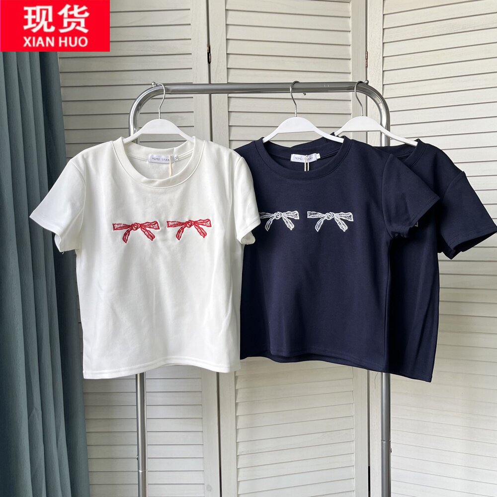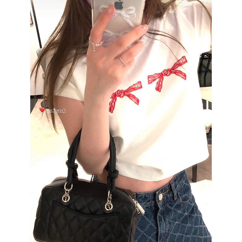 Приталенная весенняя короткая футболка с коротким рукавом с круглым воротником