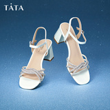 Тата он и она французские толстые сандалии на каблуках женские сандалии моды с одной полосой одиночной обувь 2024 Летние новые XBD04BL4