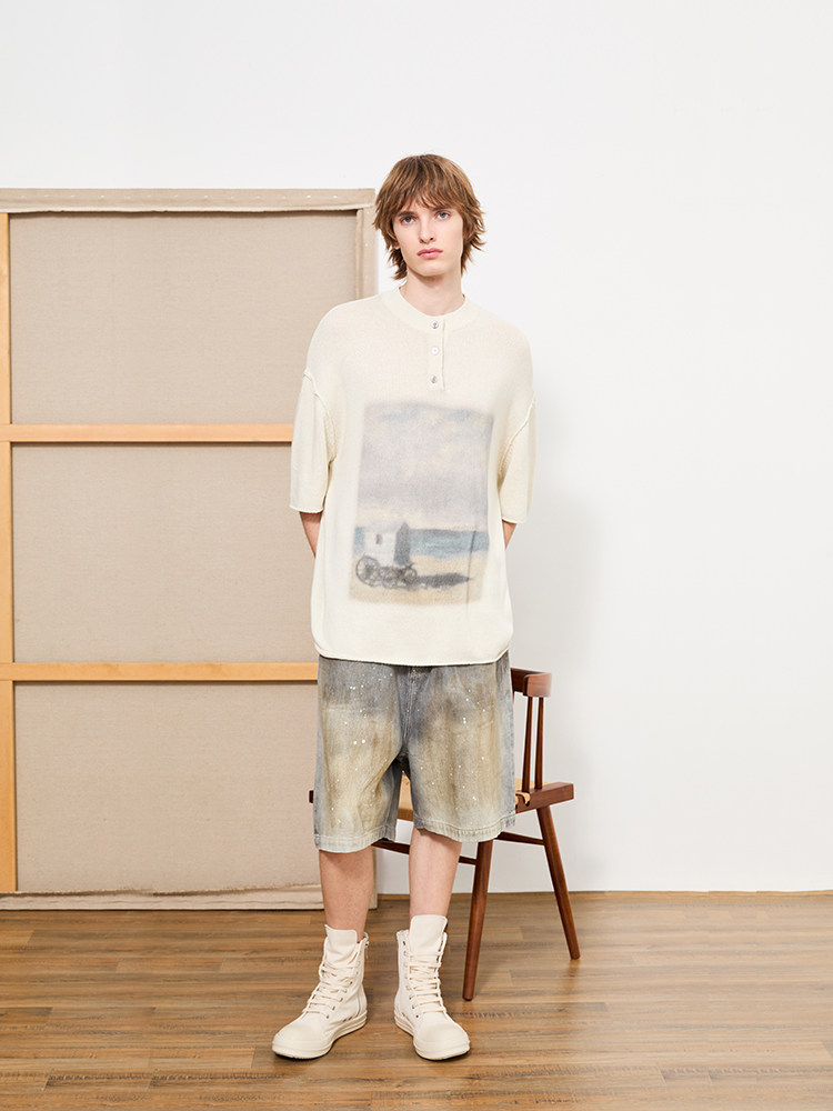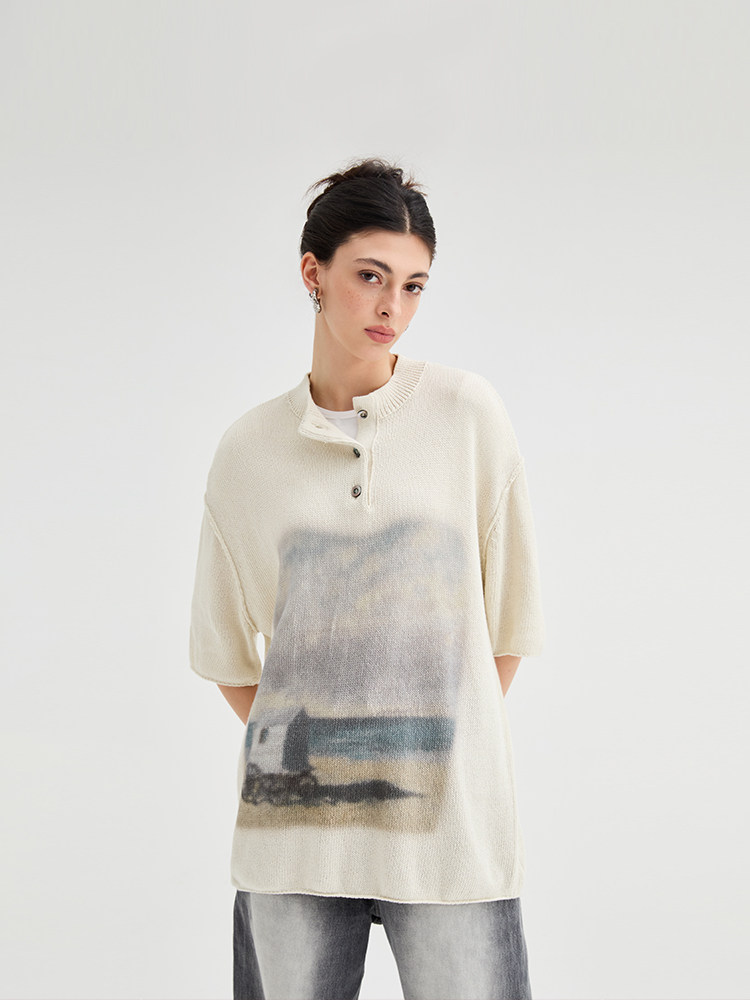 Органическая эмоция вязаная короткая -свитер -свитер цифровой тип
