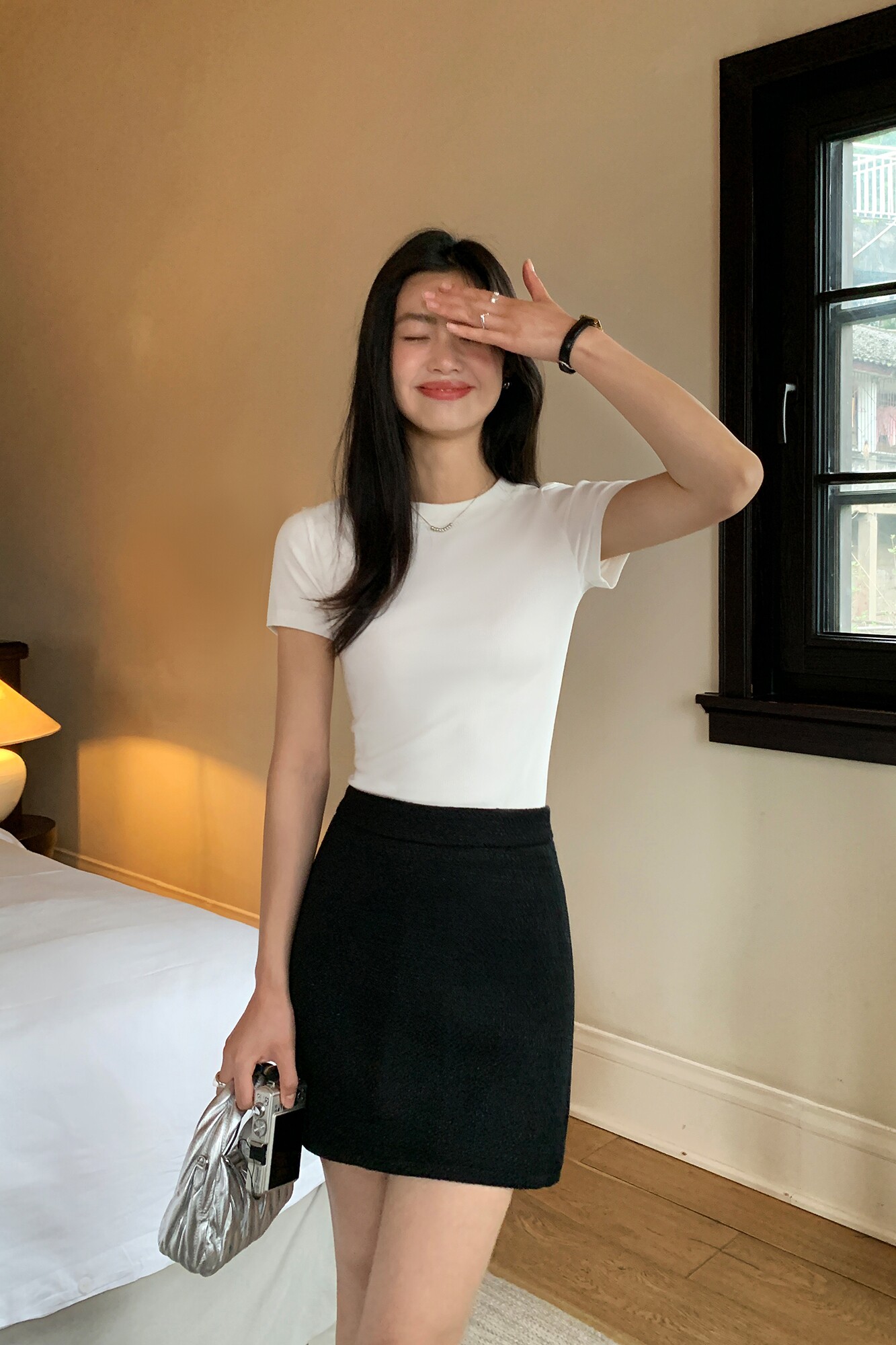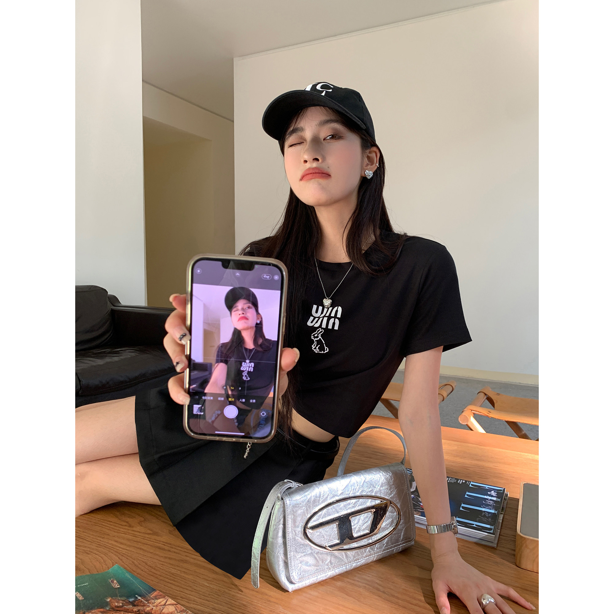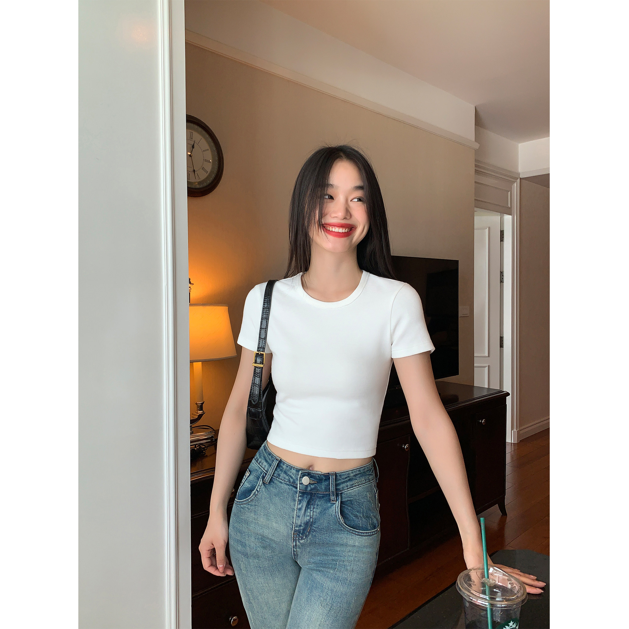 Трикотажная футболка с коротким рукавом, облегающий крой