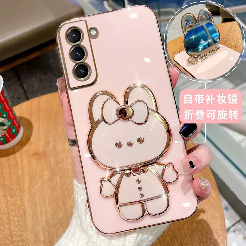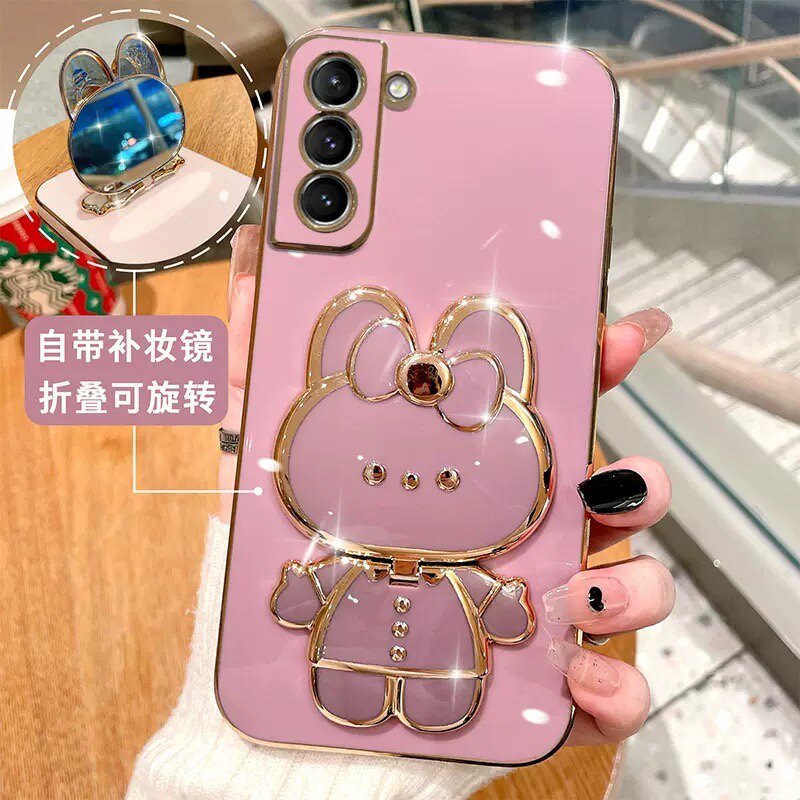 Чехол-держатель для телефона с зеркальным покрытием Samsung A54, косметическое зеркало с кроликом, подходящее для чехла для мобильного телефона Samsung S24, трехмерный держатель S22ultra, набор S21 s20
