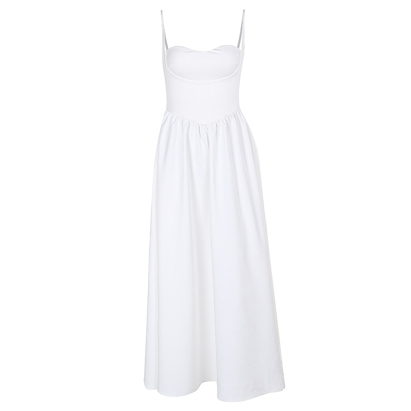 Белое платье, приталенная длинная юбка, французский стиль, эффект подтяжки, длина макси