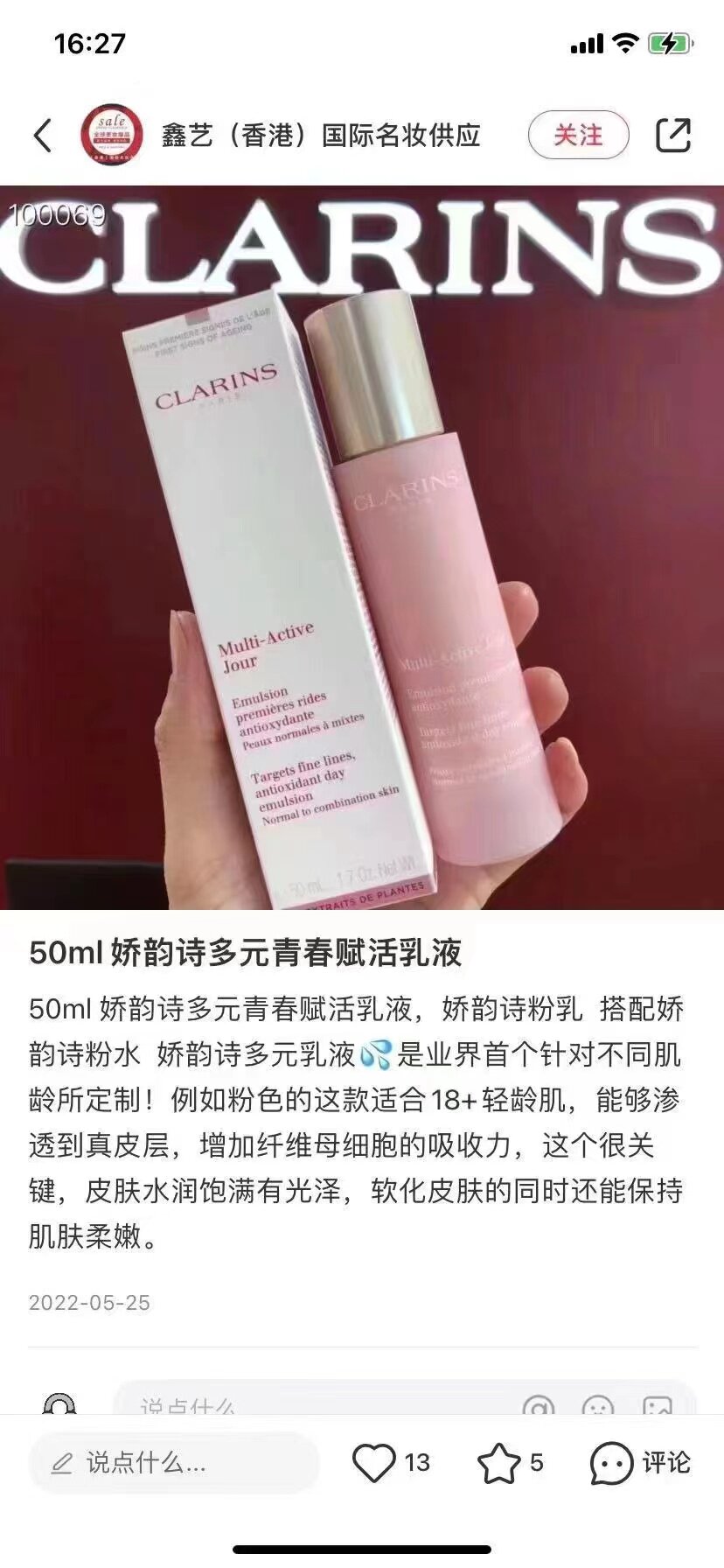Clarins, розовый увлажняющий лосьон, 50 мл