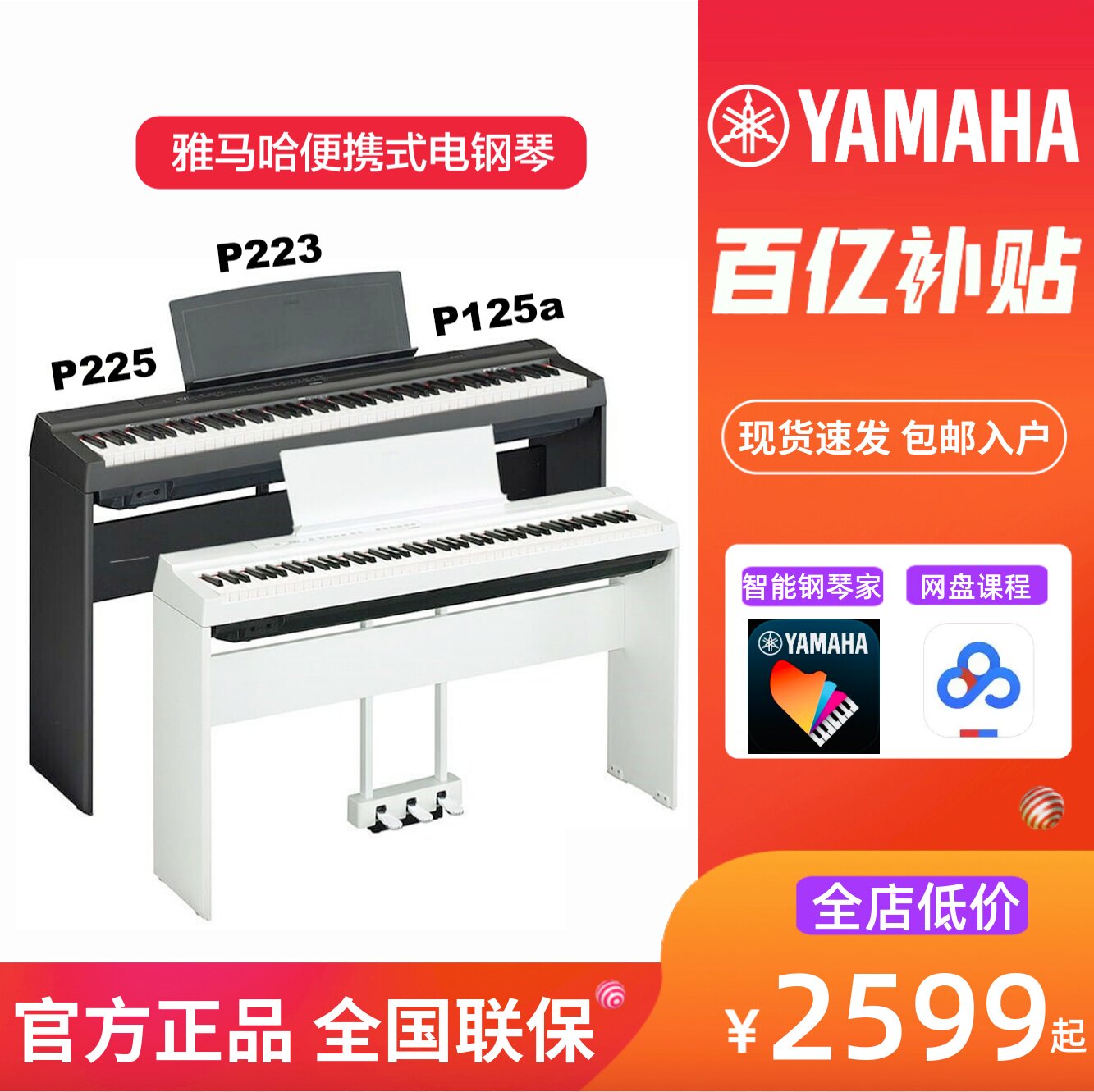 Yamaha, портативный умный синтезатор, P128, P223, P225, 88 клавиш