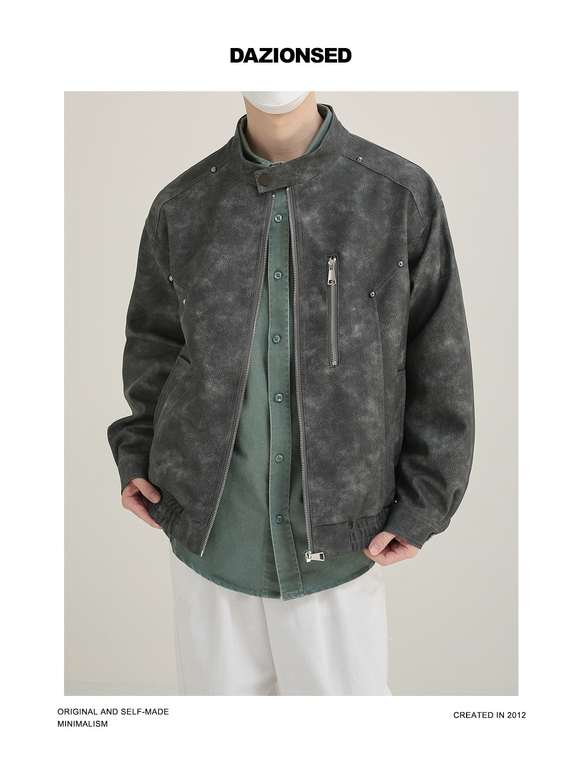 Dazo Matte Leather Brivet Decorative Leather Jacket Мужская простая модная бренда PU Motorcycle Comse