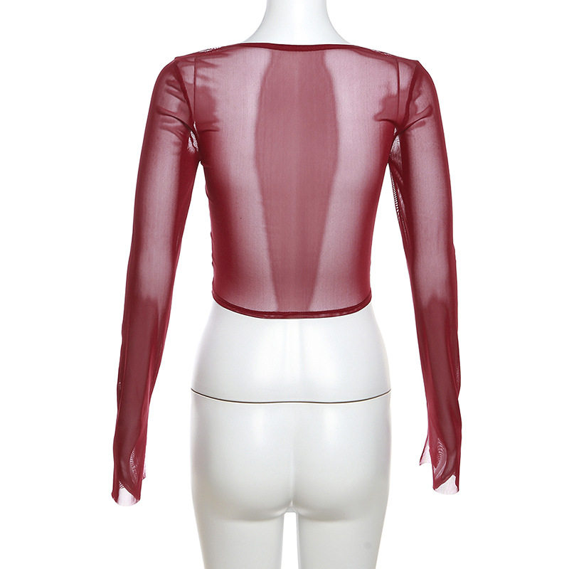 Корейский шикарный сладкий и пряный наряд сексуальная квадратная сетчатая футболка для женщин, стройная и ниша, короткая рыбная костяная топ