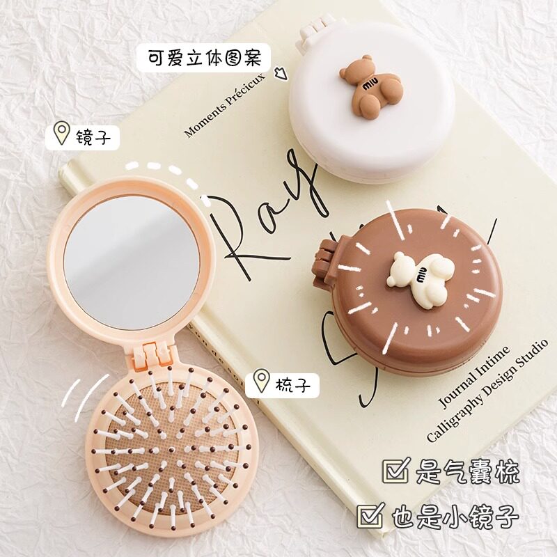 Милая портативная расческа, маленький детский кушон, складная подушка безопасности, массажер, зеркало