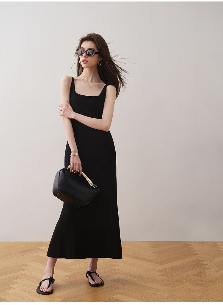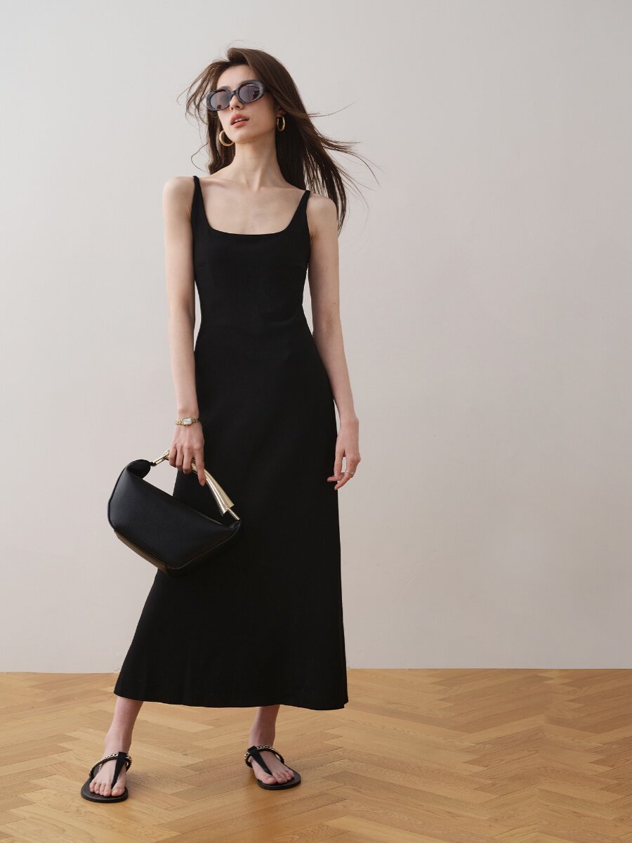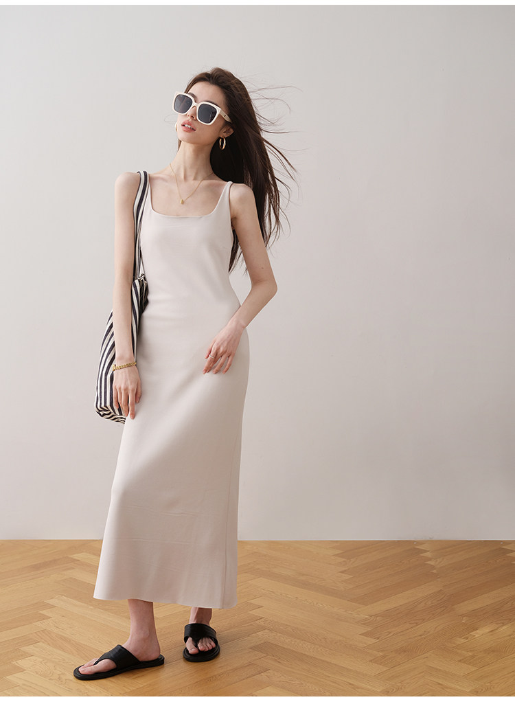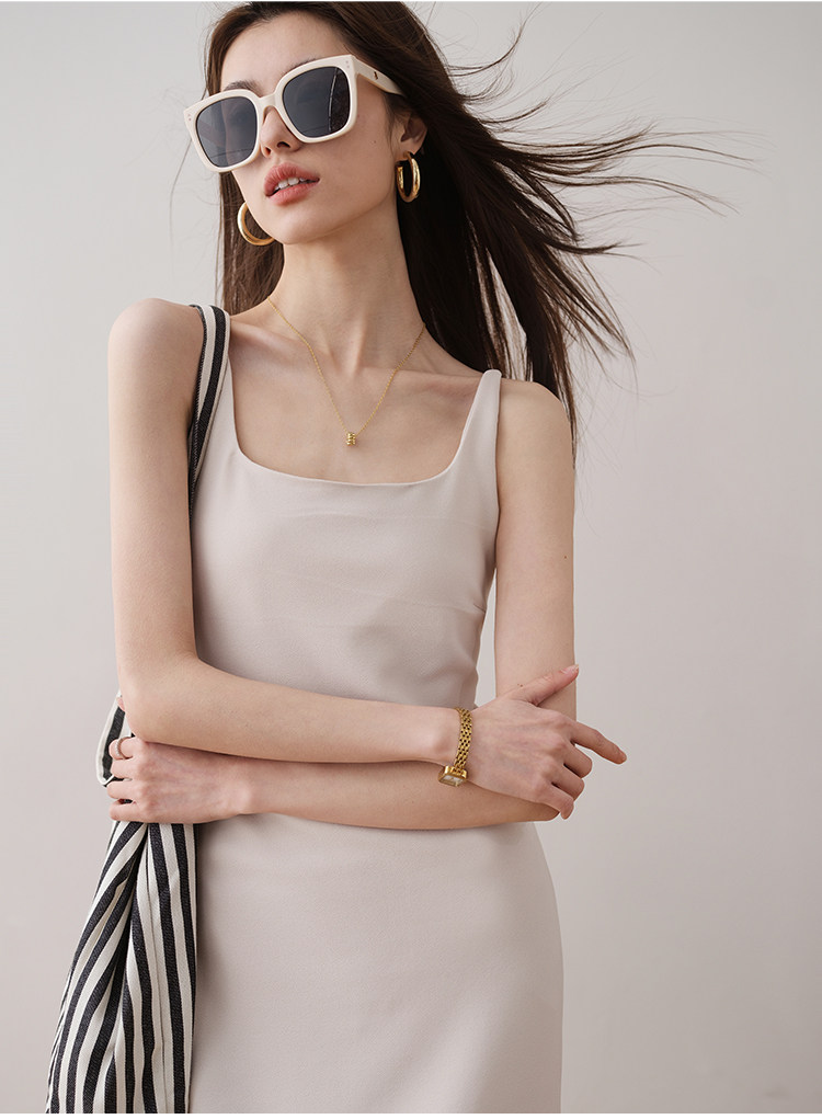Летнее платье, минималистичная однотонная длинная юбка, французский стиль, квадратный вырез, премиум класс