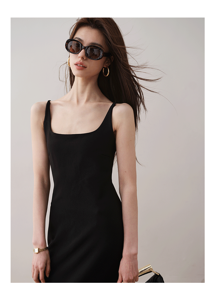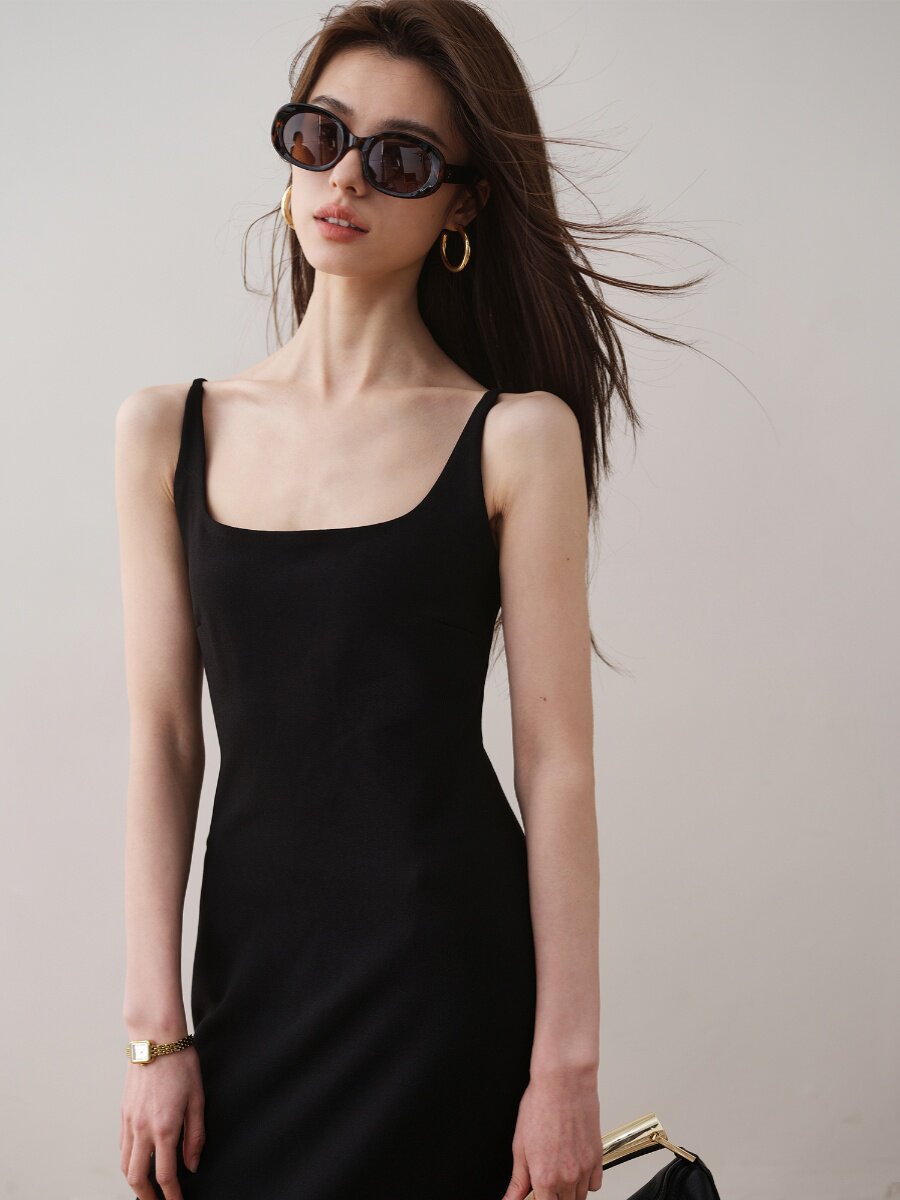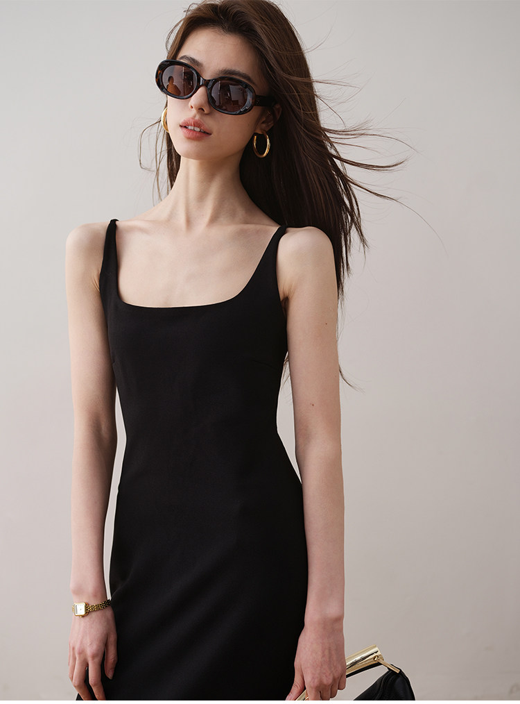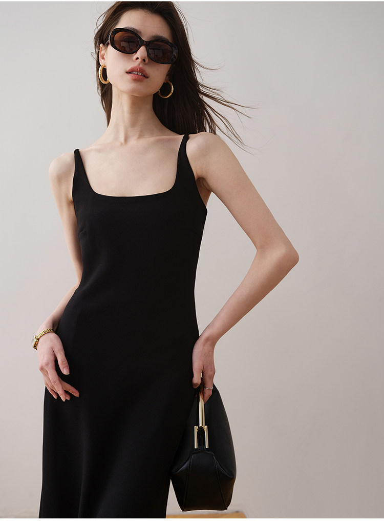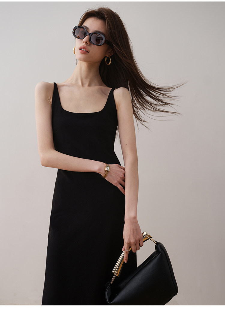 Летнее платье, минималистичная однотонная длинная юбка, французский стиль, квадратный вырез, премиум класс