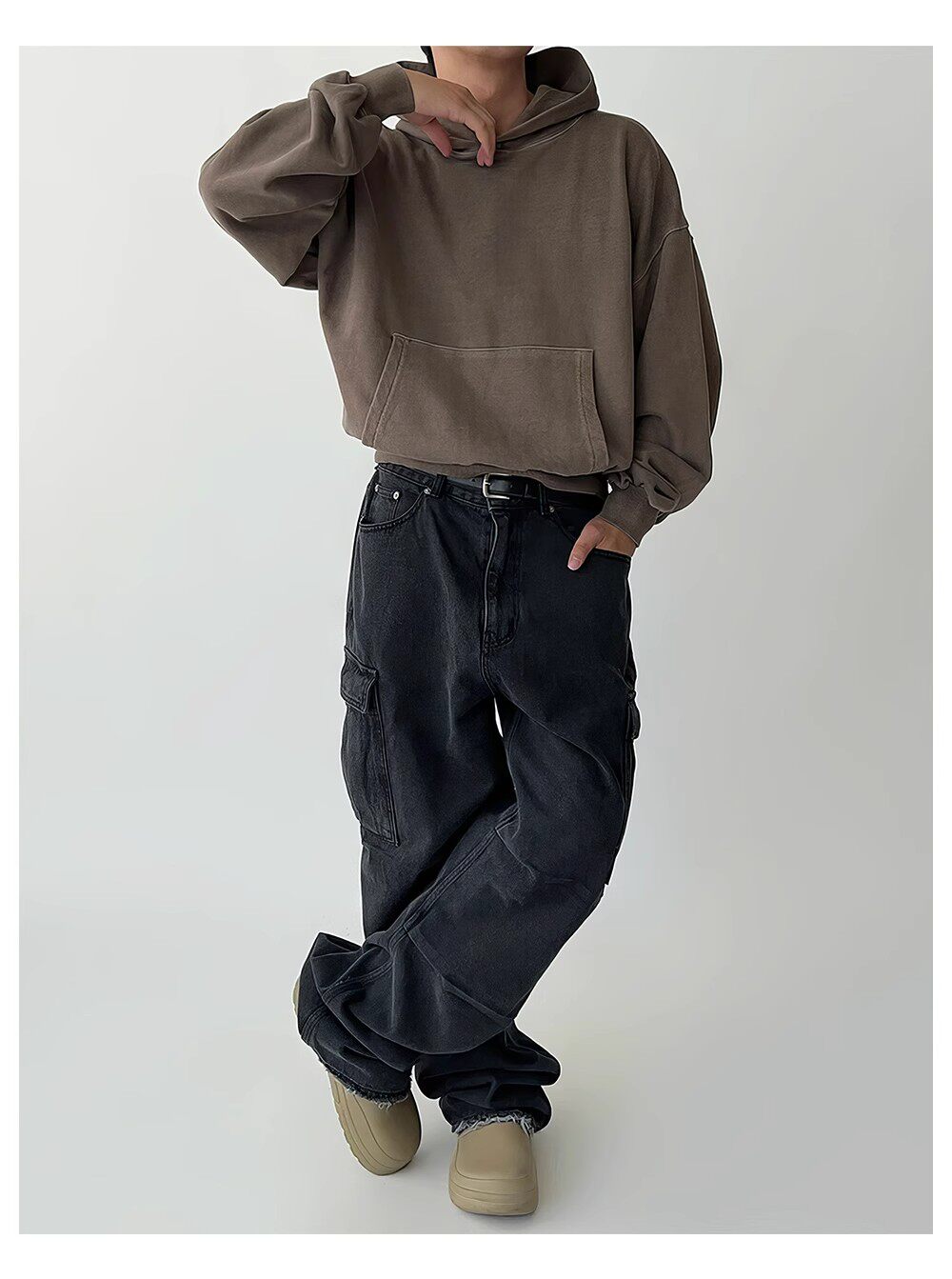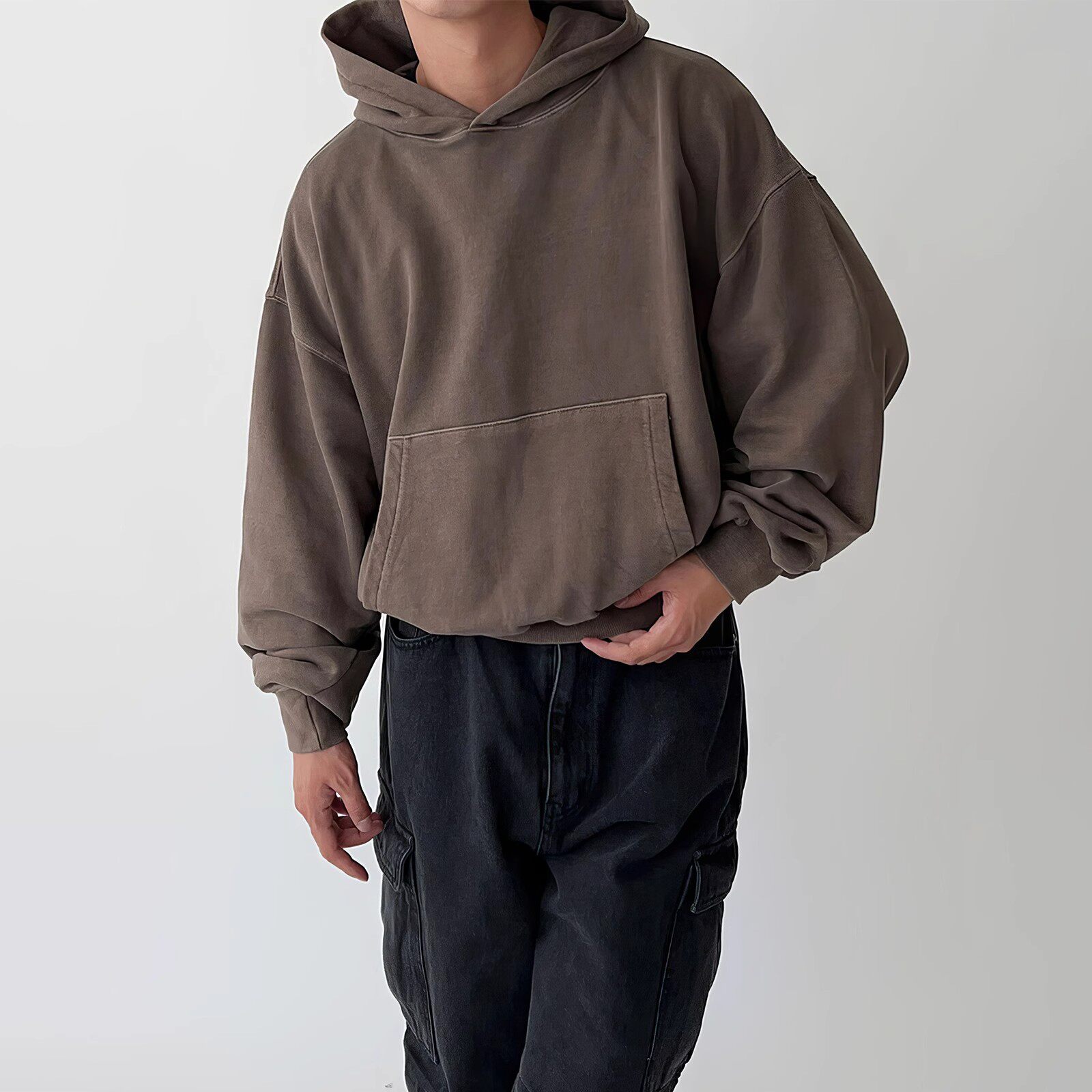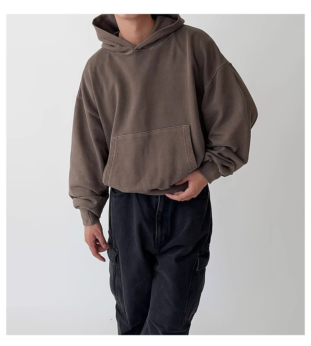 Коричневая осенняя толстовка с капюшоном, куртка, в американском стиле, свободный крой