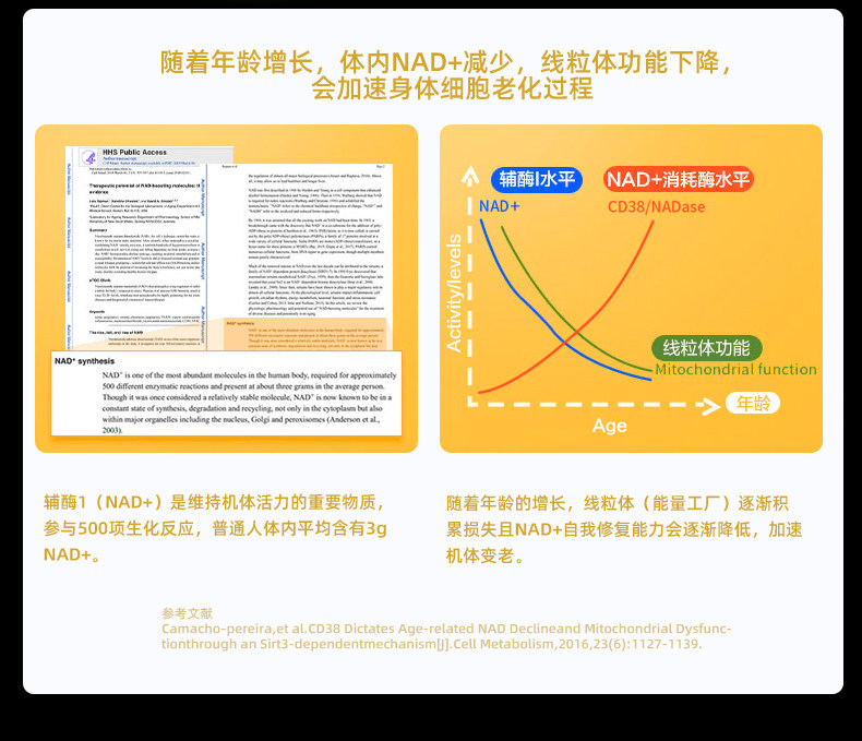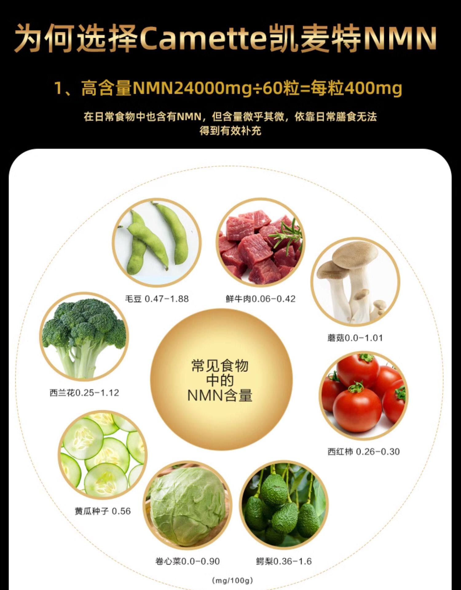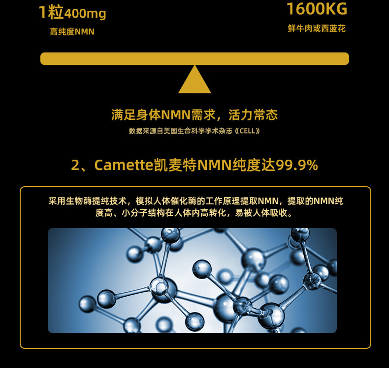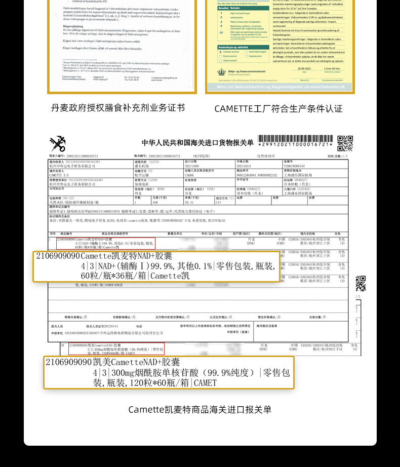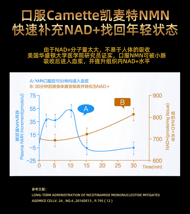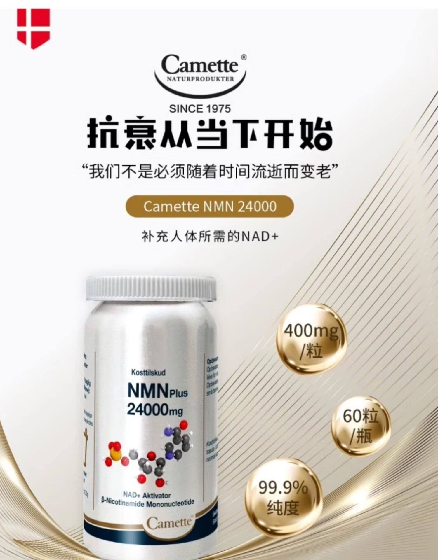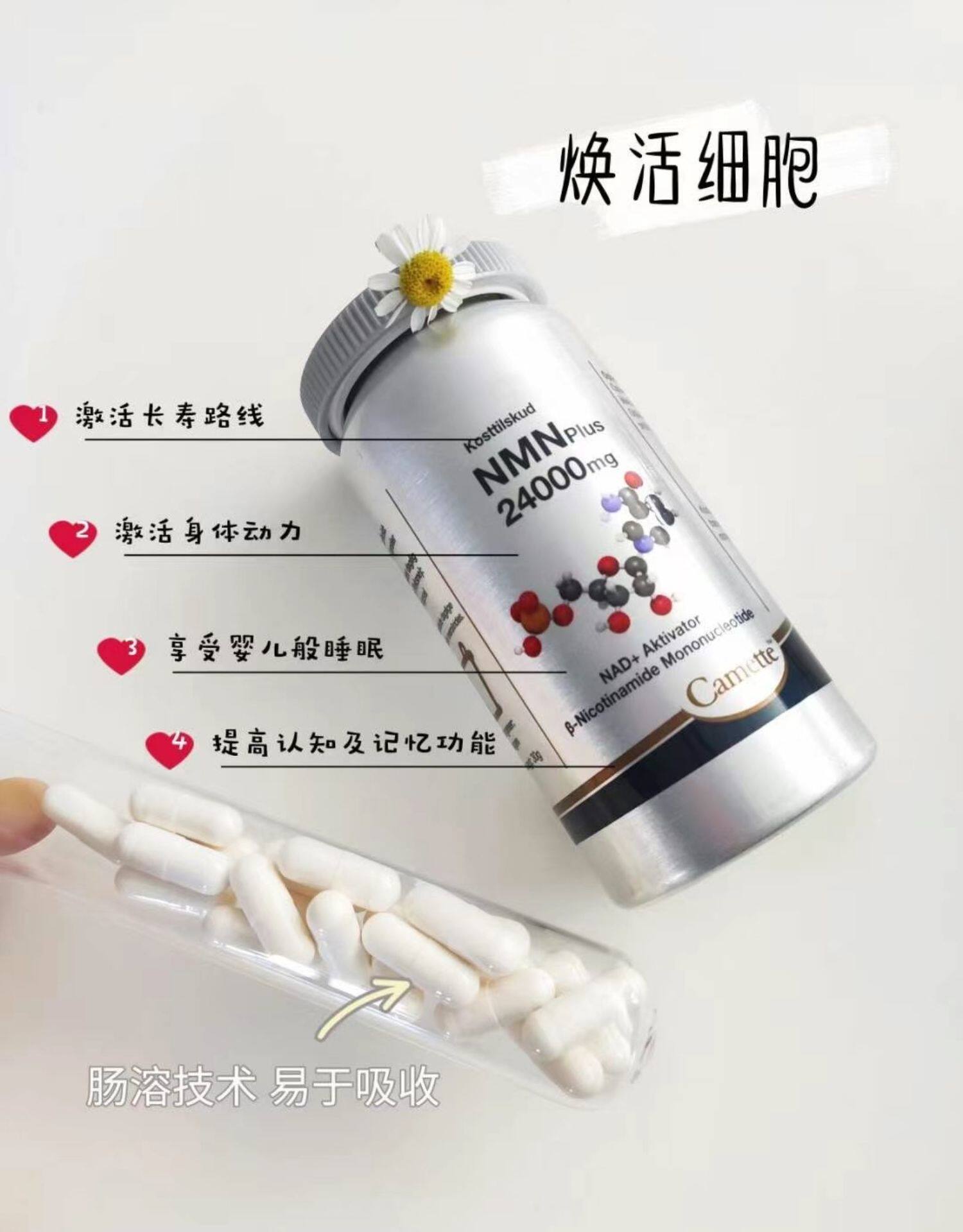 Camette, импортированная Дания, NMN24000β-никотинамид нуклеотид моноцитов NAD+ 60 зерна/бутылка