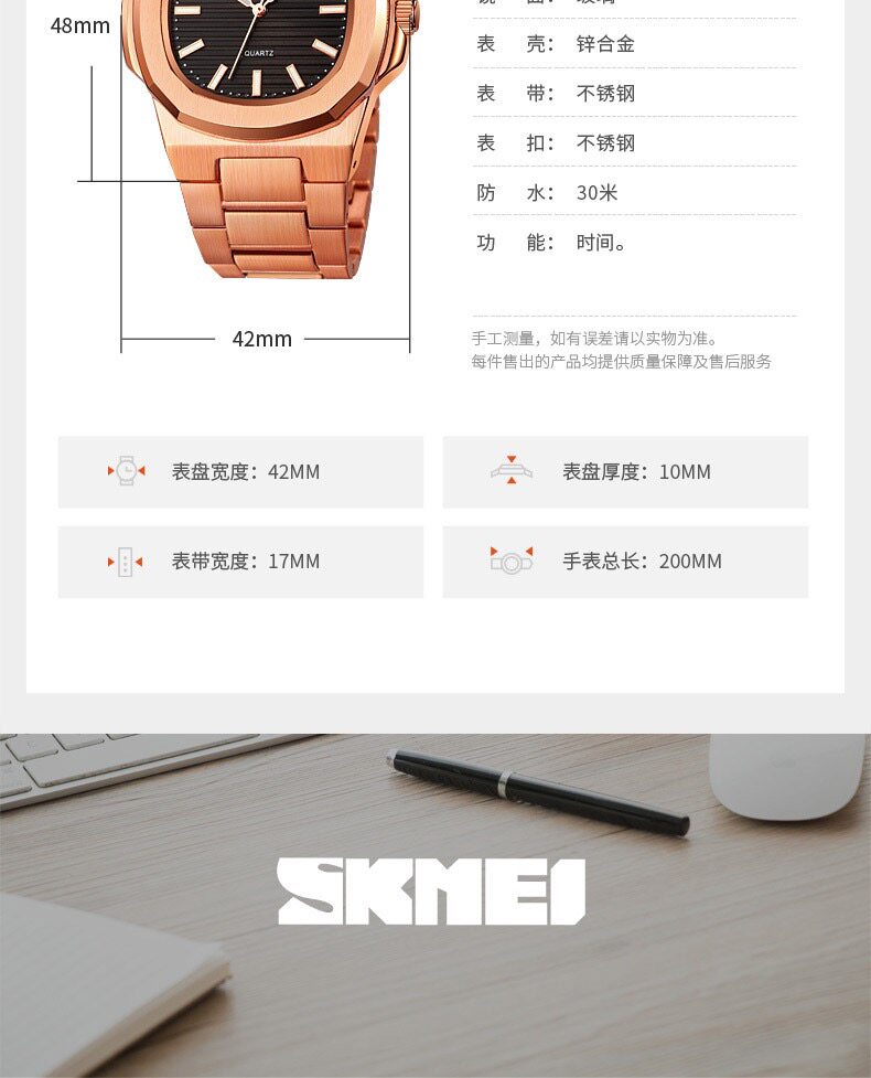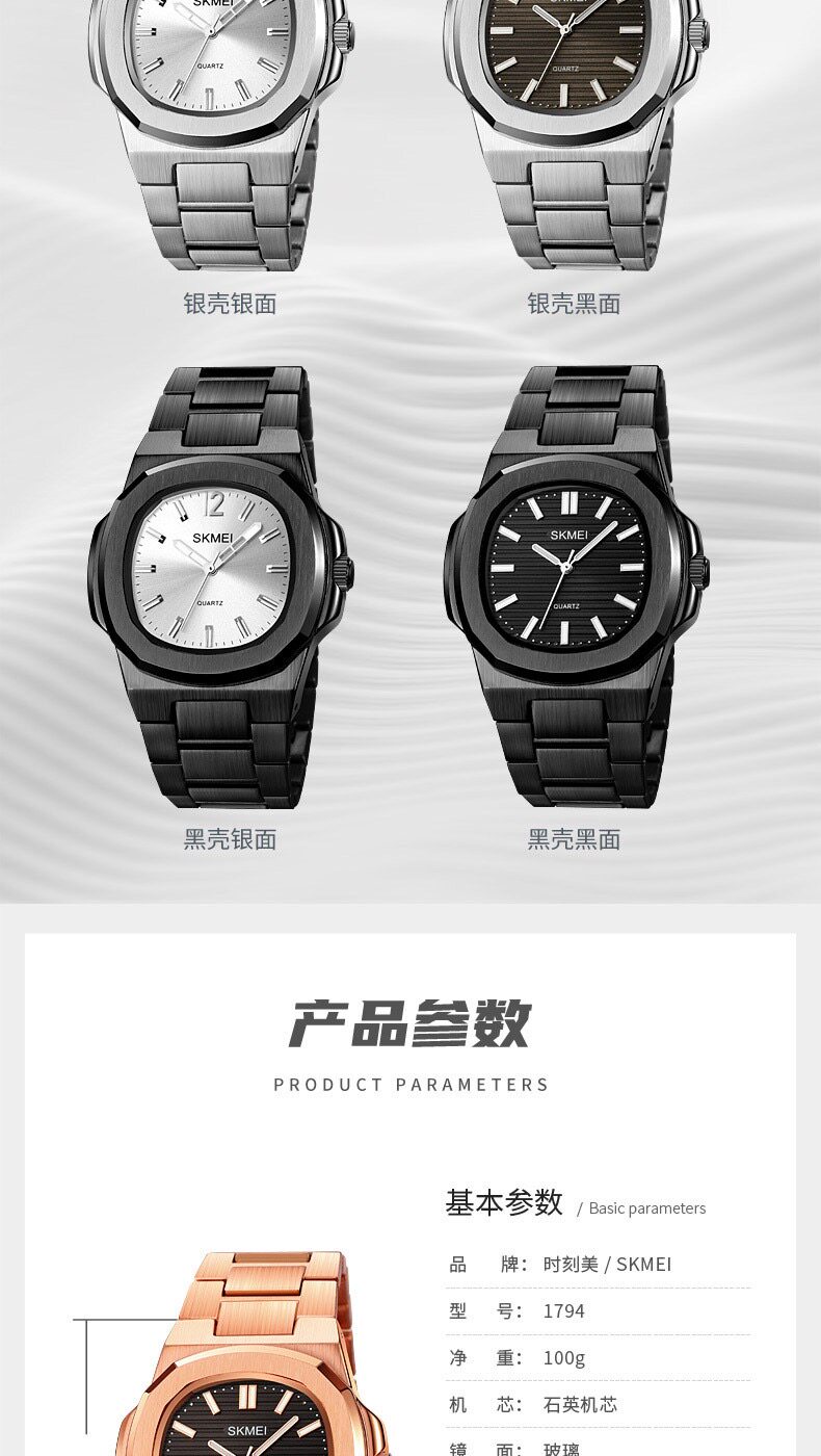 Модный трендовый водонепроницаемый стальной ремешок, кварцевые часы, полностью автоматический