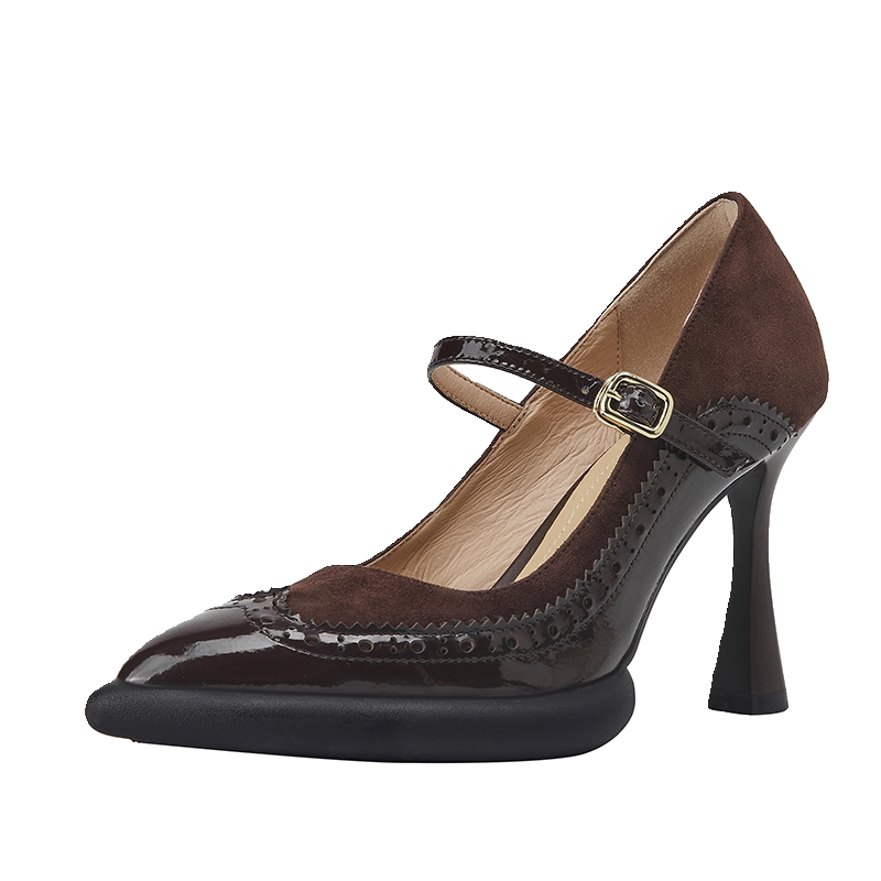 Ретро туфли на высоком каблуке с ремешком с низким вырезом, французский стиль, из натуральной кожи