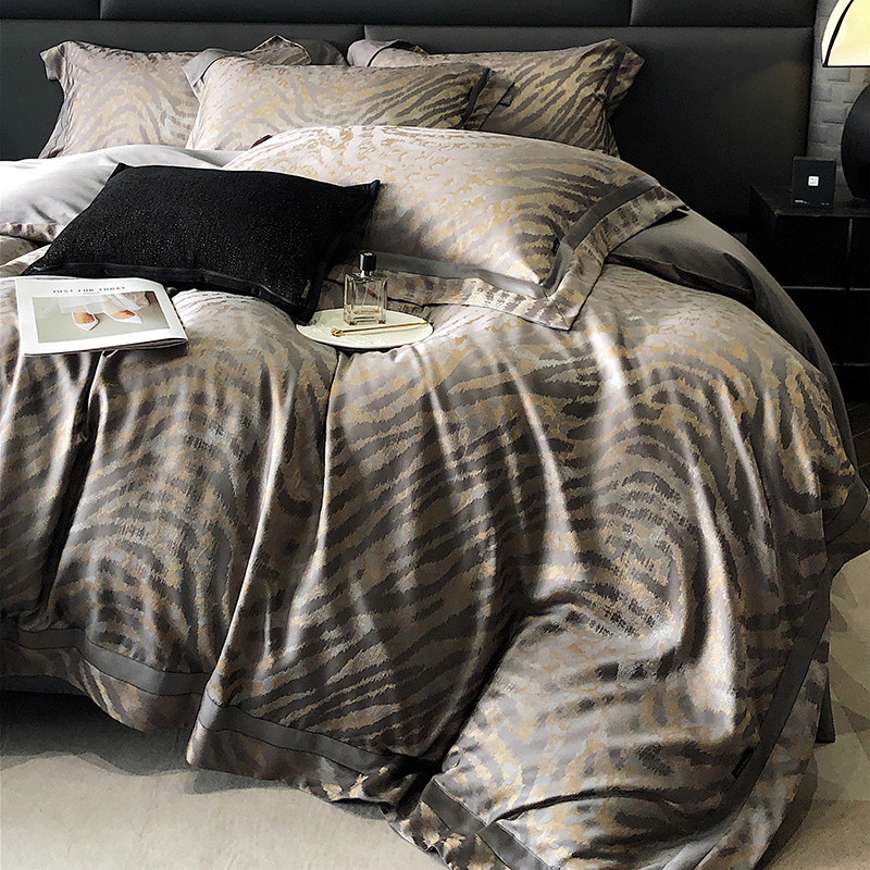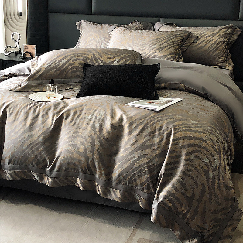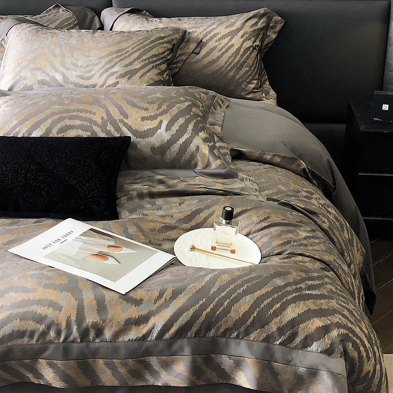 Хлопковый комплект, шелковистая элитная зебра, покрывало, постельные принадлежности, 4 предмета, изысканный стиль