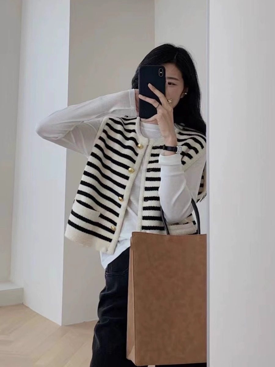 Трикотажный жилет без рукавов, осенняя куртка, свитер, в стиле Шанель