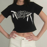 Приталенная короткая футболка с бантиком, английский, короткий рукав