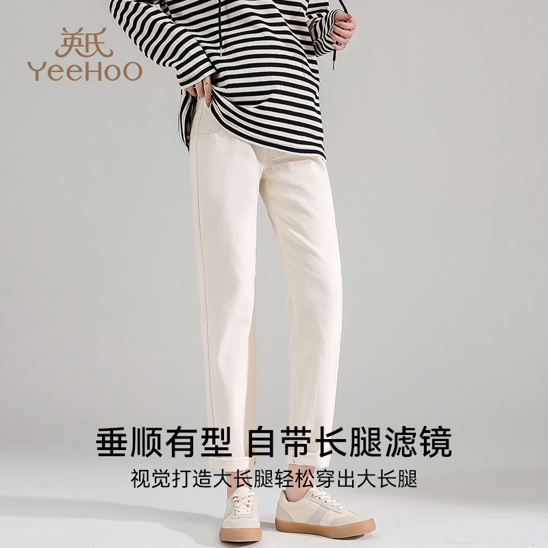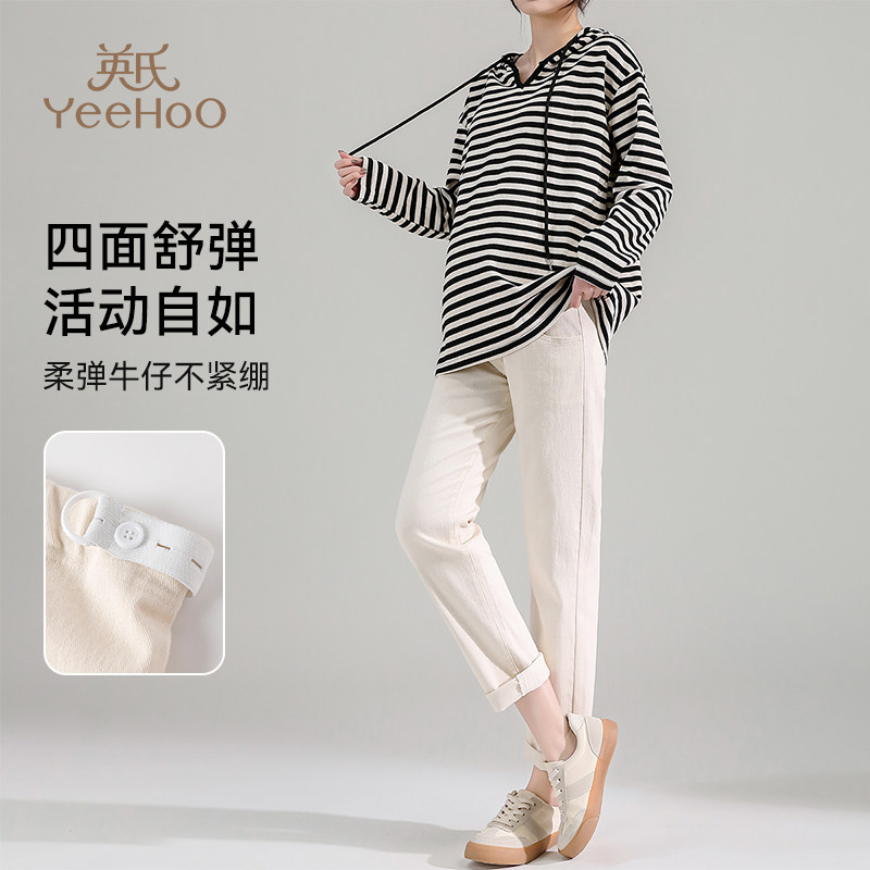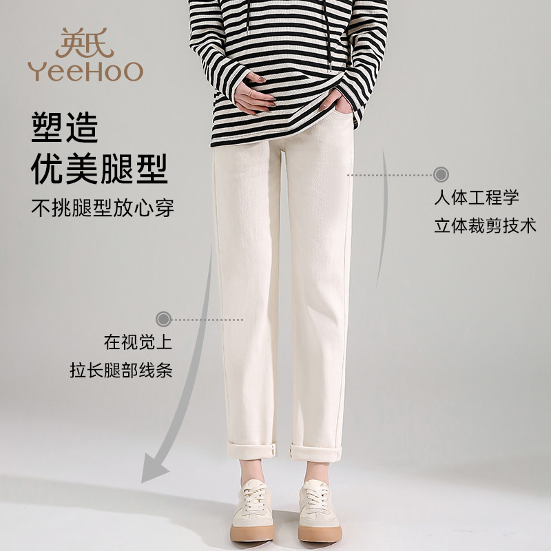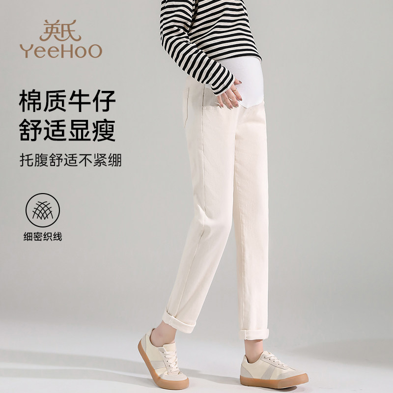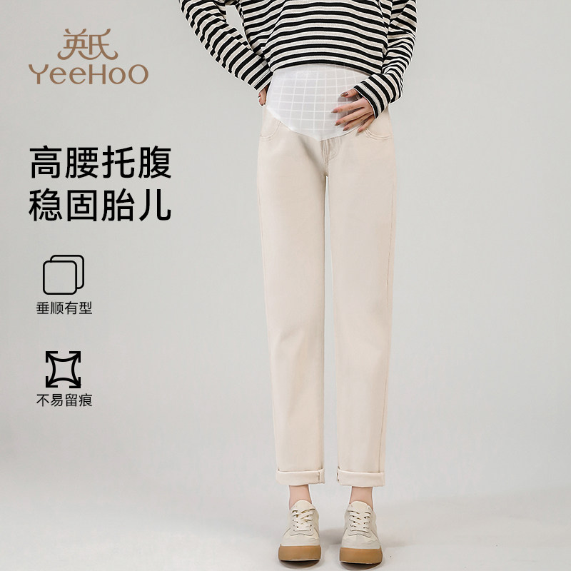 Осенние джинсы для беременных, штаны с поддержкой живота, высокая талия, свободный прямой крой
