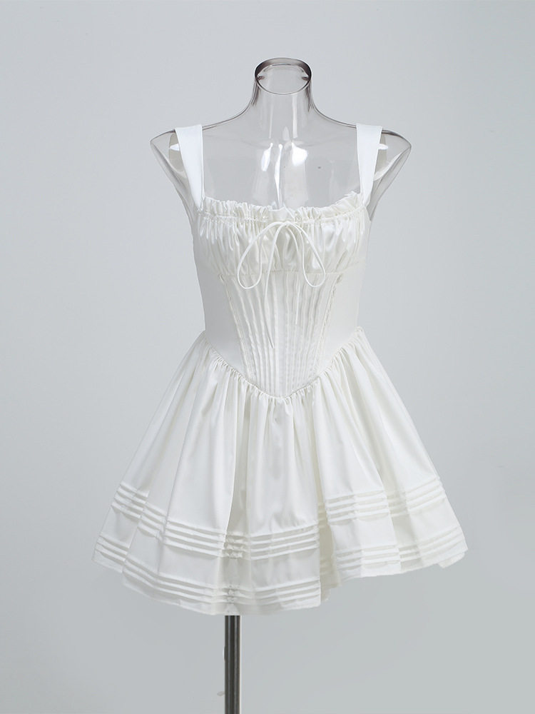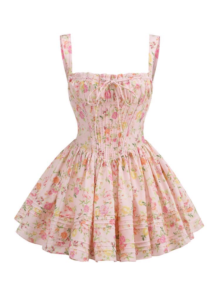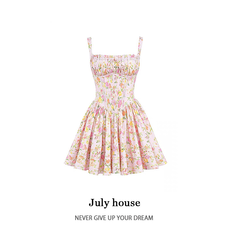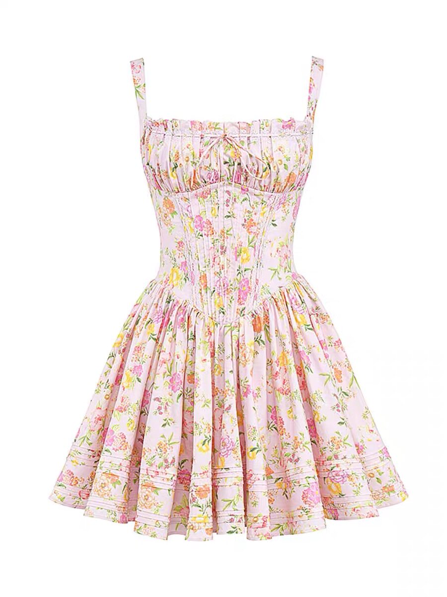 Небольшое платье, дизайнерский приталенный белый корсет, французский стиль, цветочный принт, тренд сезона