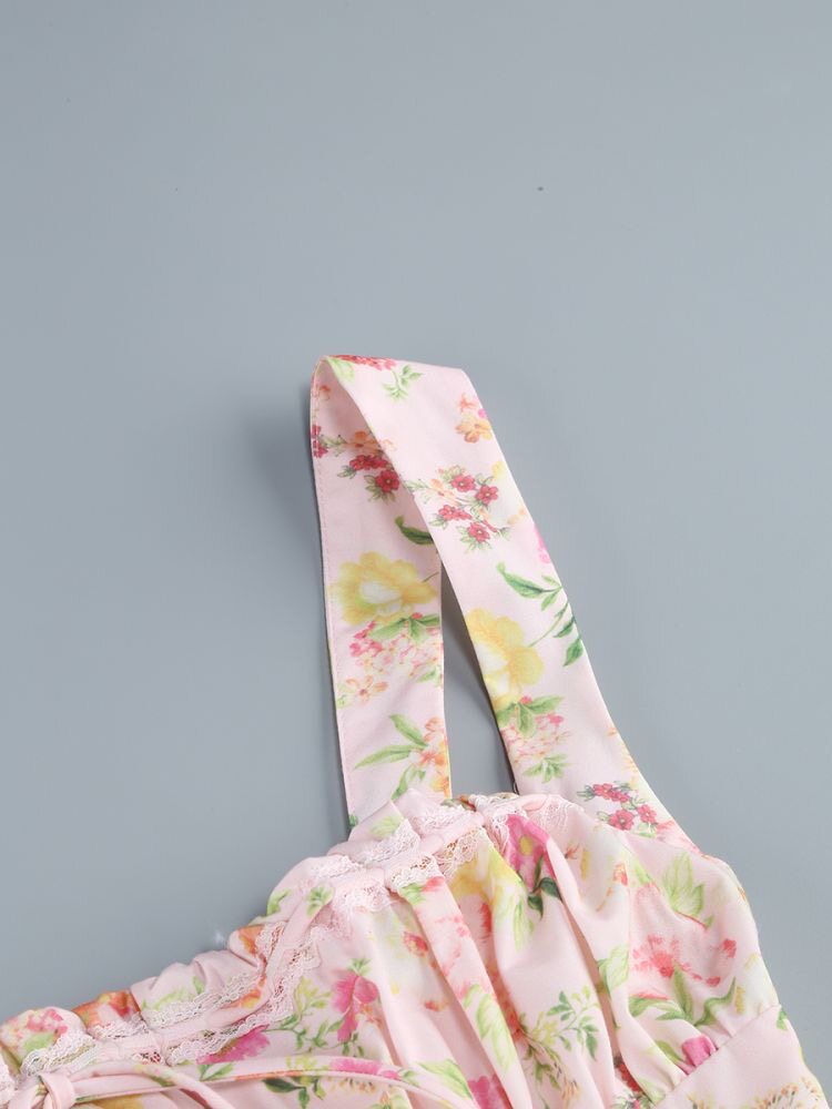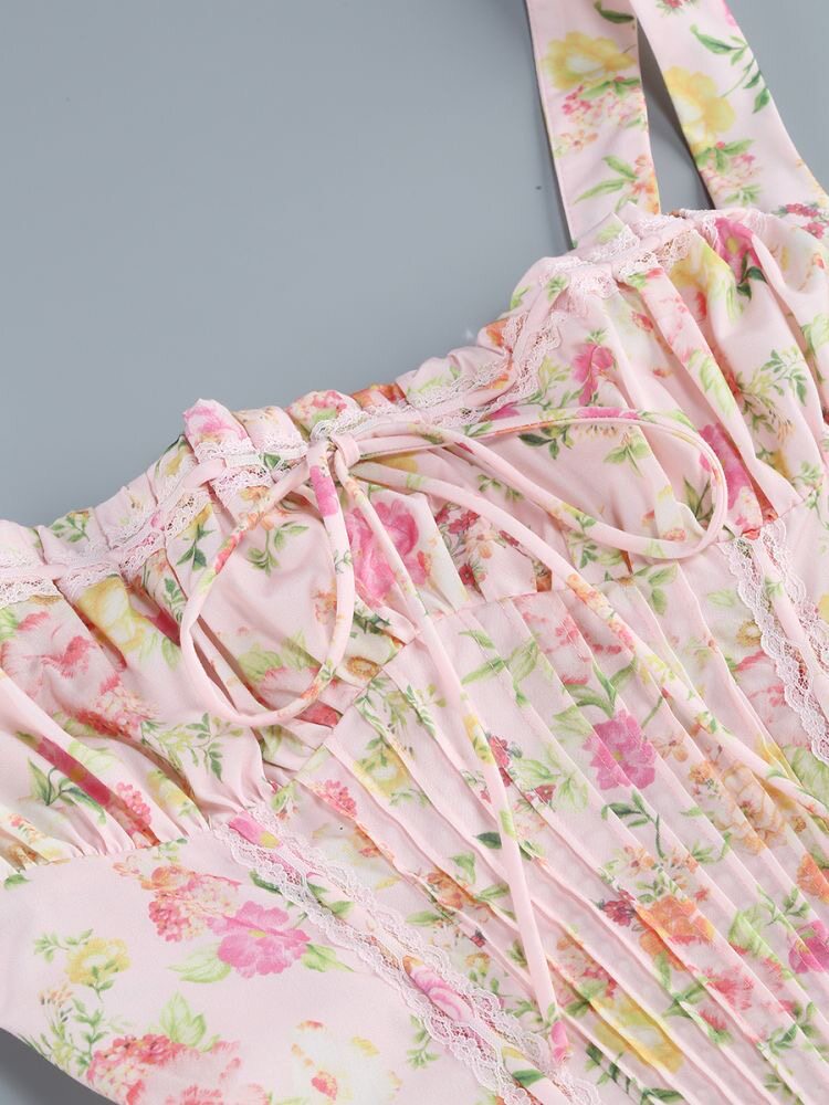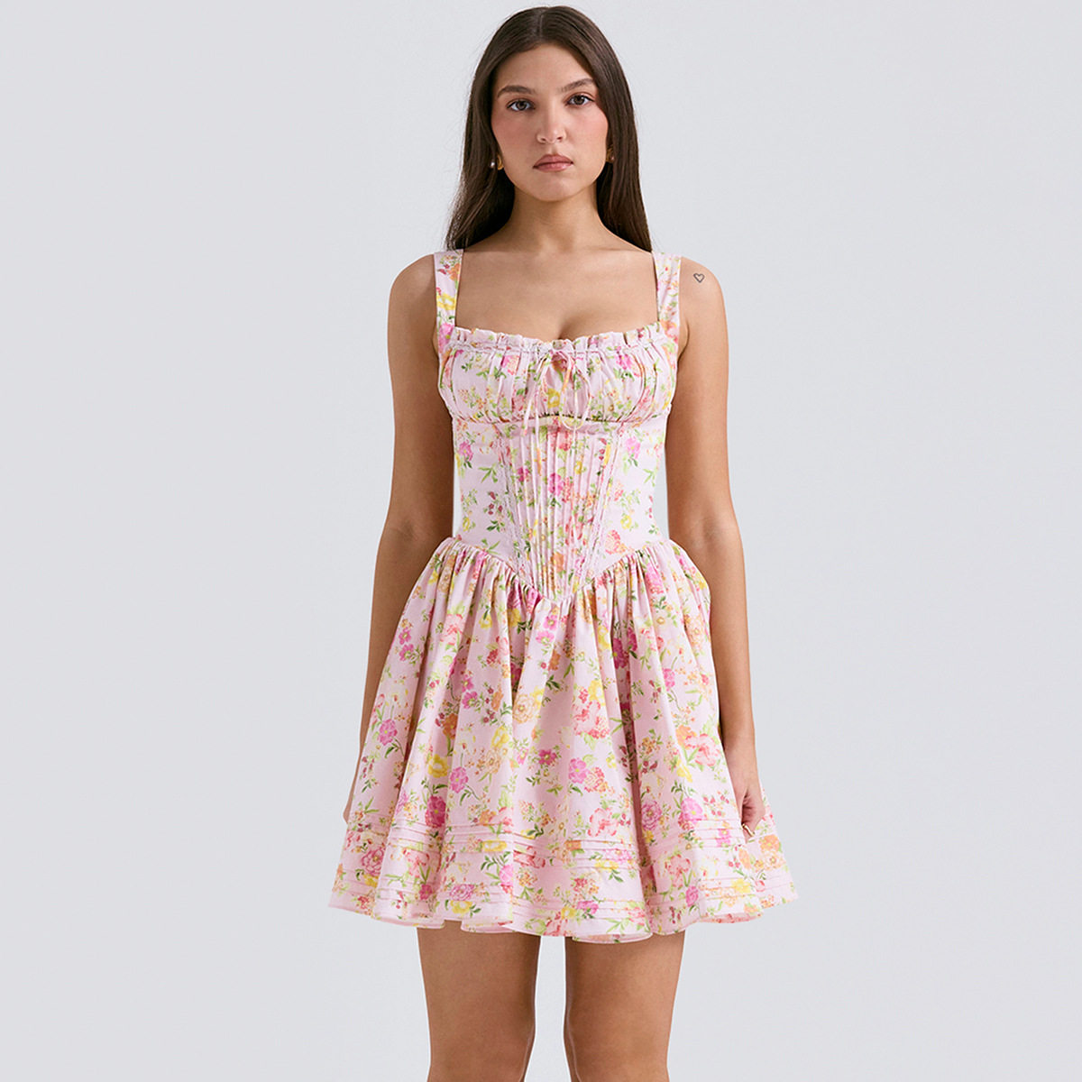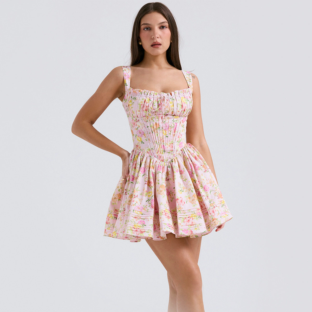 Небольшое платье, дизайнерский приталенный белый корсет, французский стиль, цветочный принт, тренд сезона