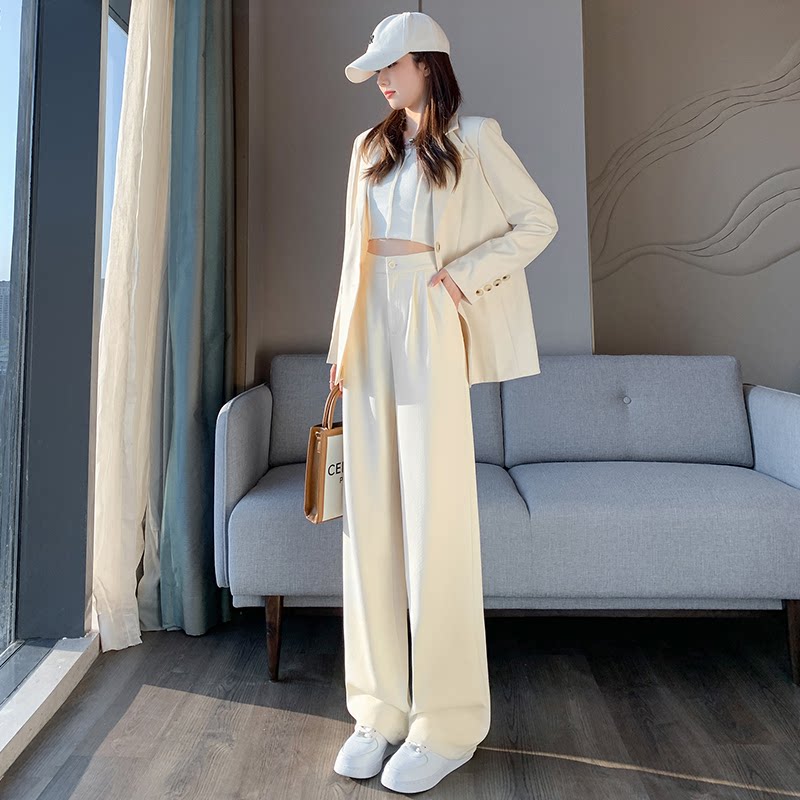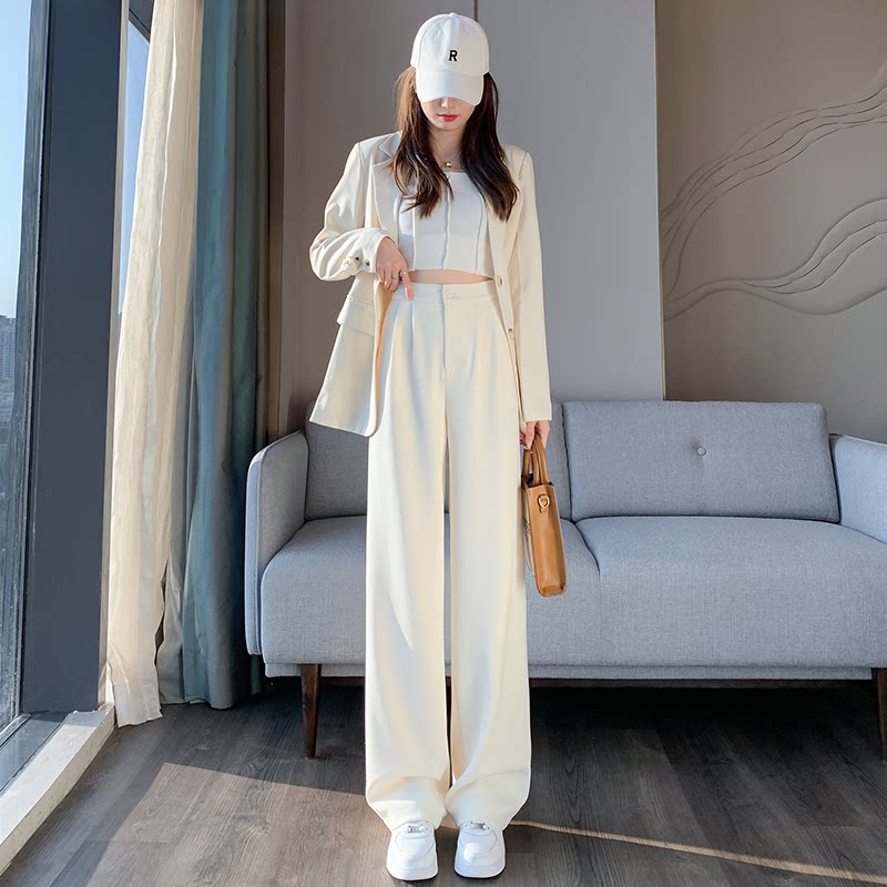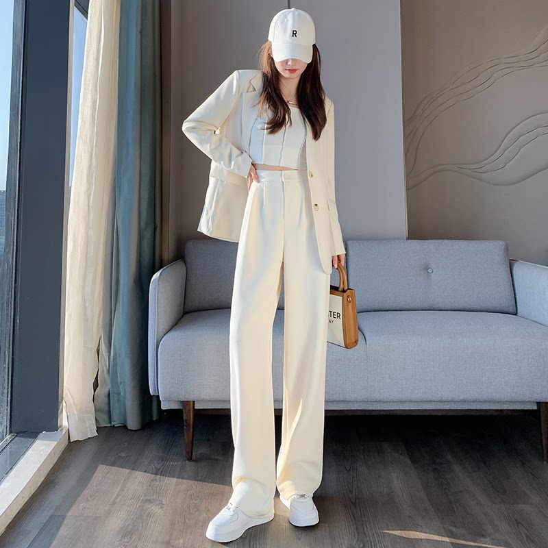 Белые весенние летние штаны, костюм, свободный прямой крой, изысканный стиль
