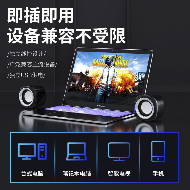 Ноутбук, настольные маленькие колонки, мегафон