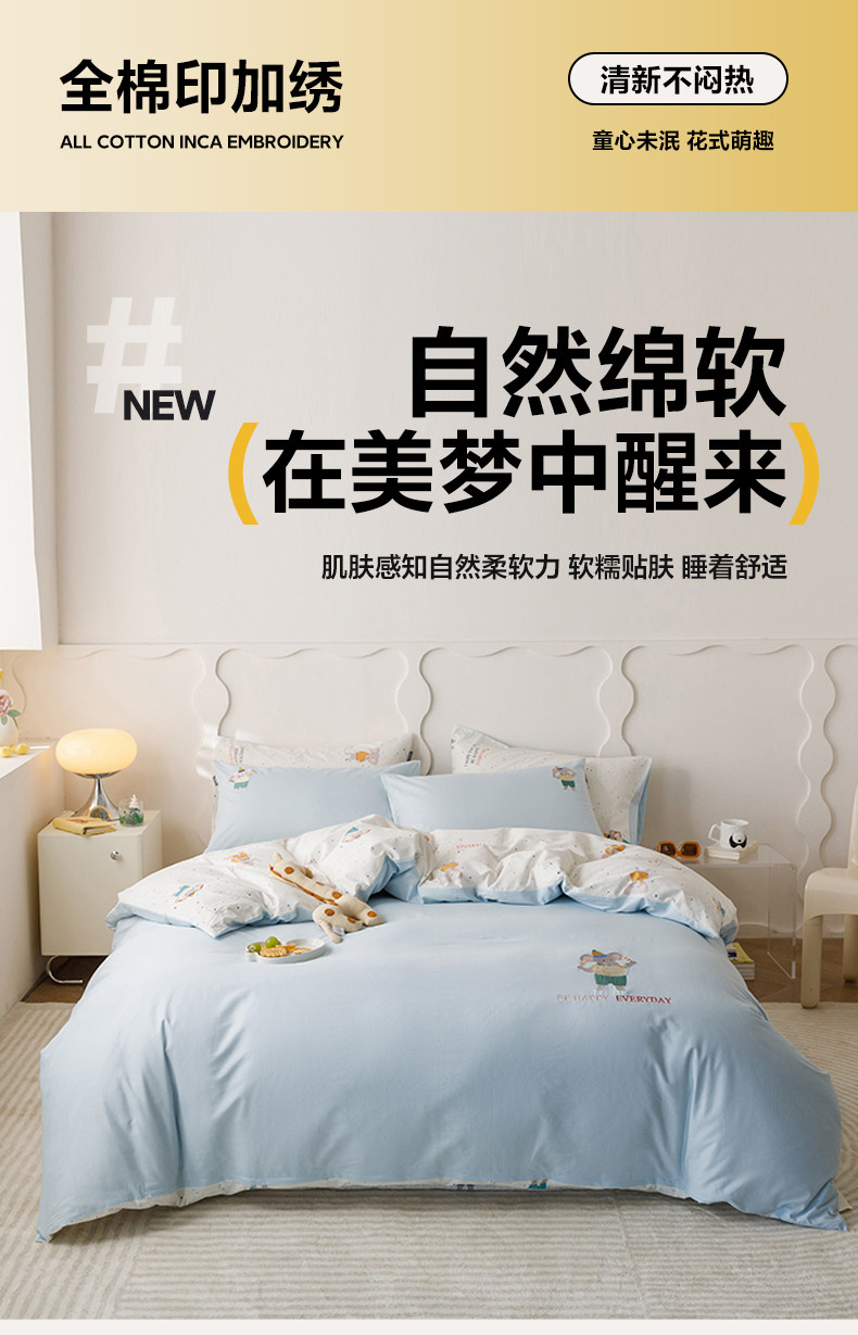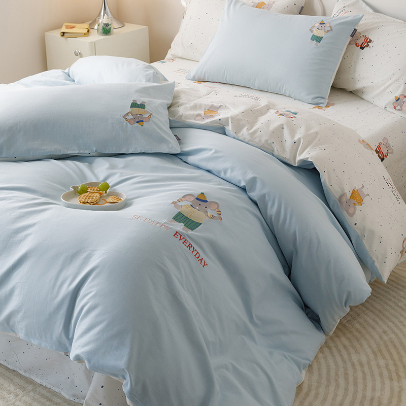 Мультяшный хлопковый детский комплект, пододеяльник, простыня, с вышивкой, 4 предмета, постельные принадлежности, 3 предмета