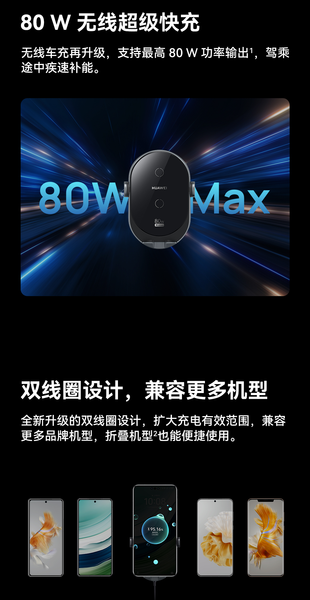 Huawei Super Fast Fastging Wireless Car Зарядка (MAX 80W) автомобильное зарядное устройство поддерживает Pura70 Pro