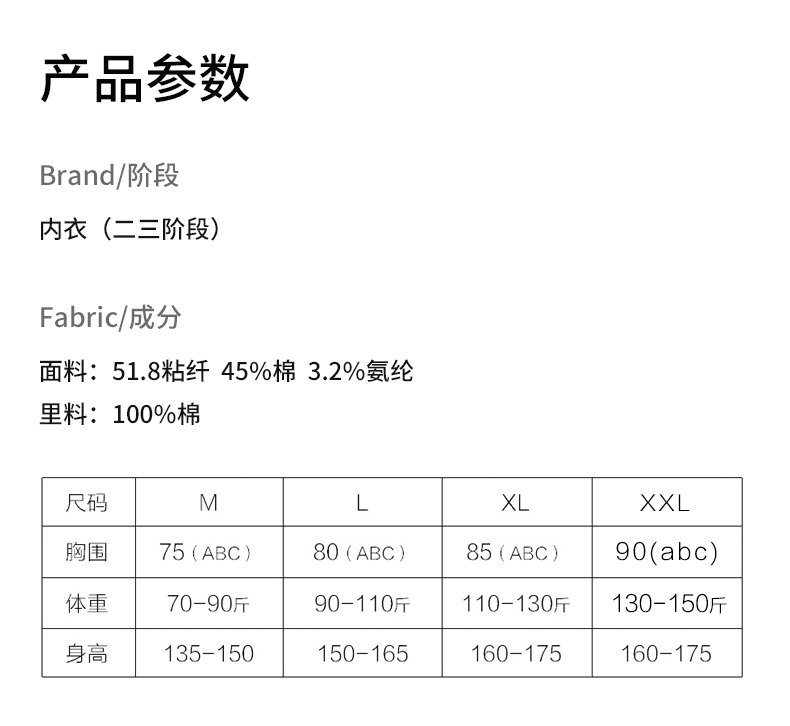 | Размер: | 34/75 (предложено в пределах 65-90 Джин), 36/80 (рекомендуется 90-110 JIN), 38/85 (110-130 Джин рекомендовал), 40/90 (130-150 Джин рекомендовал) |