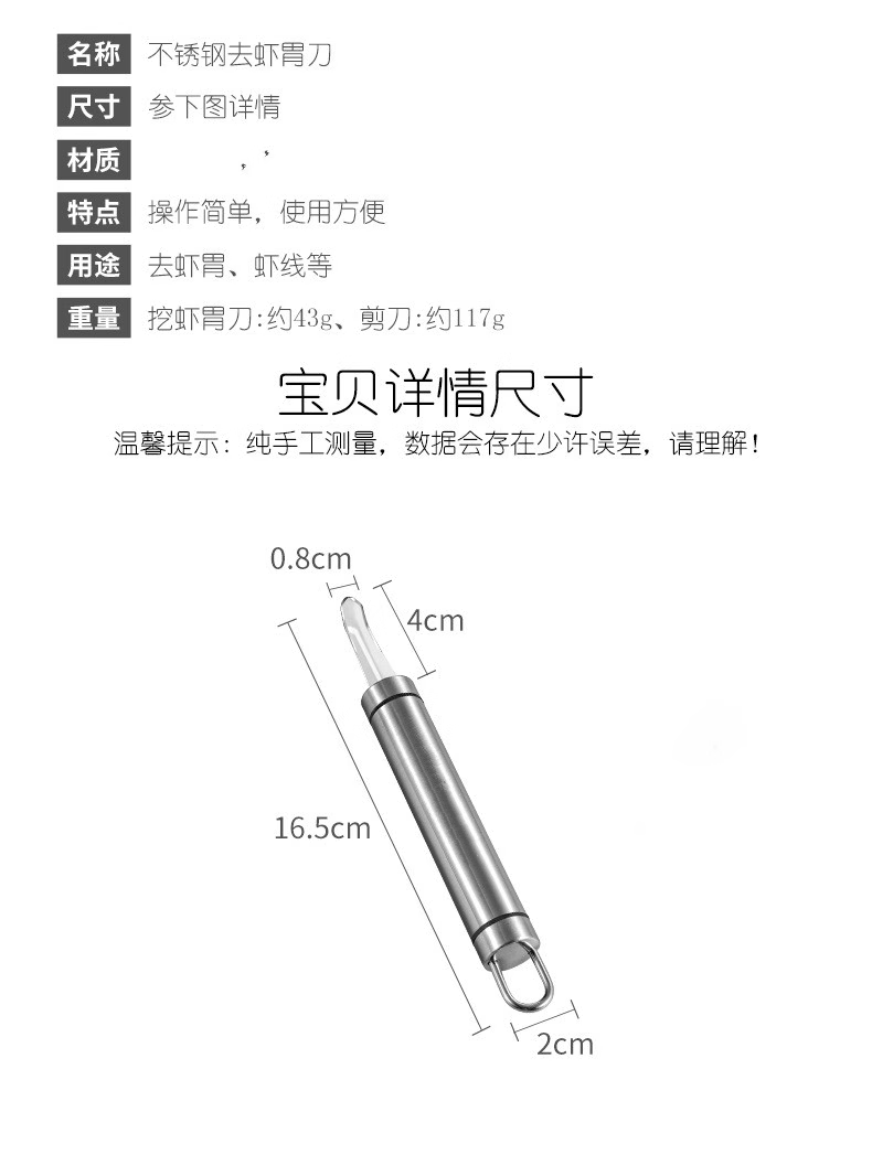 Линия креветок из нержавеющей стали Удаляла нож копание креветки и желудка, очищающие корзины креветок, артефакты креветок, выбирая линии креветок для открытия глаз для креветок.