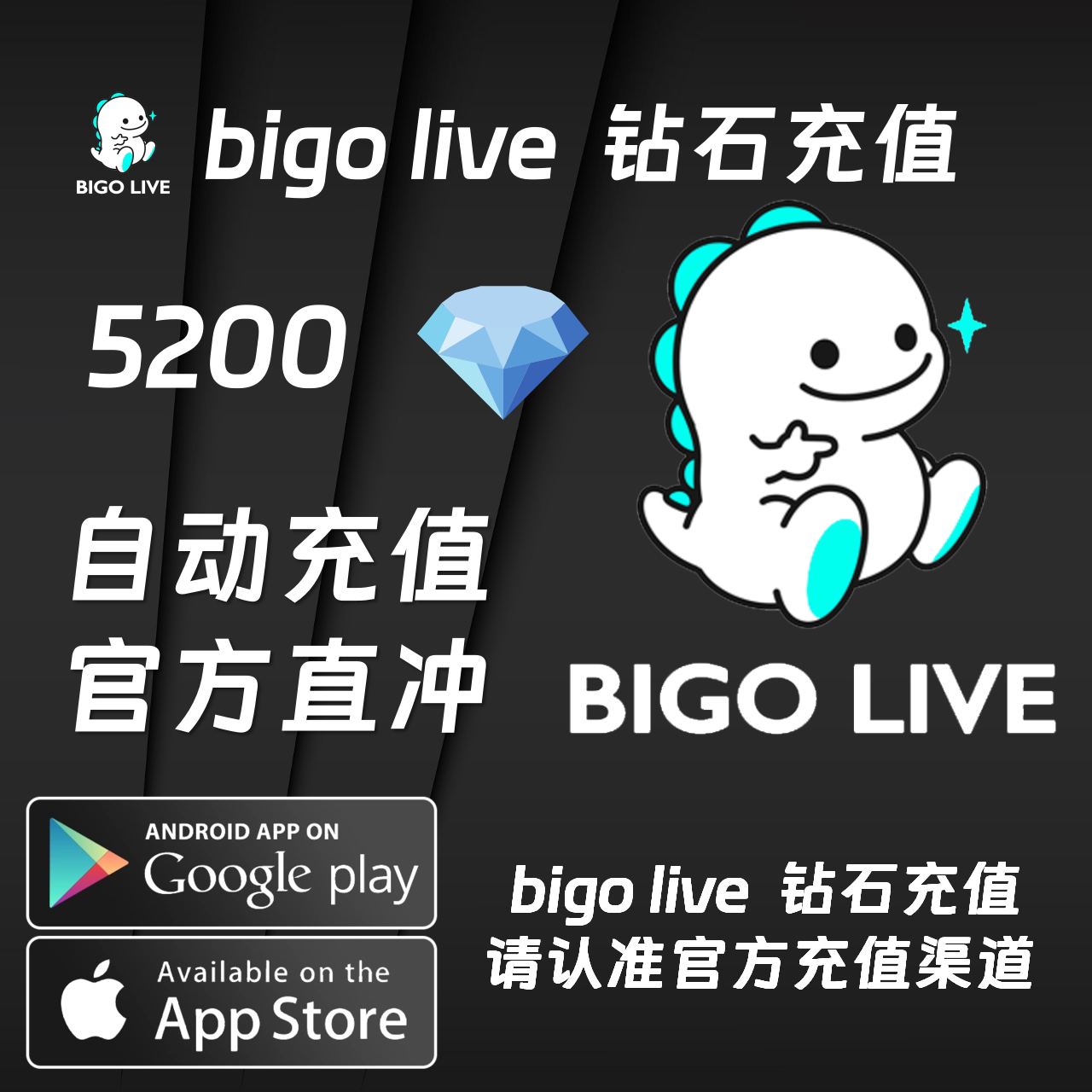 [Прямое пополнение] BIGO LIVE пополнение 5200 бриллиантов с коэффициентом прямого пополнения ID 7,85
