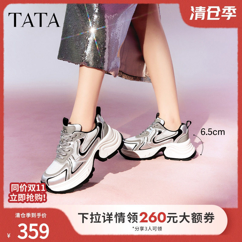 Тата, ее серебряная туфли для папочки Женская толстая спортивная обувь женская легкая повседневная обувь 2024 весна Новая DGAG1AM4