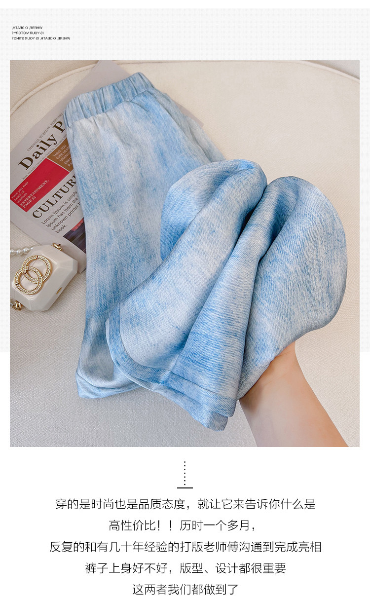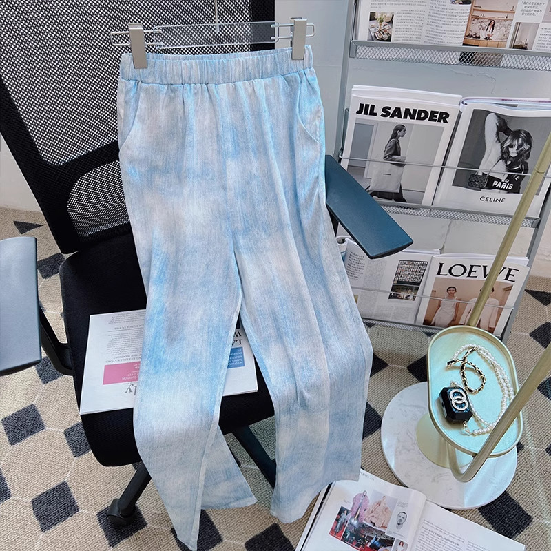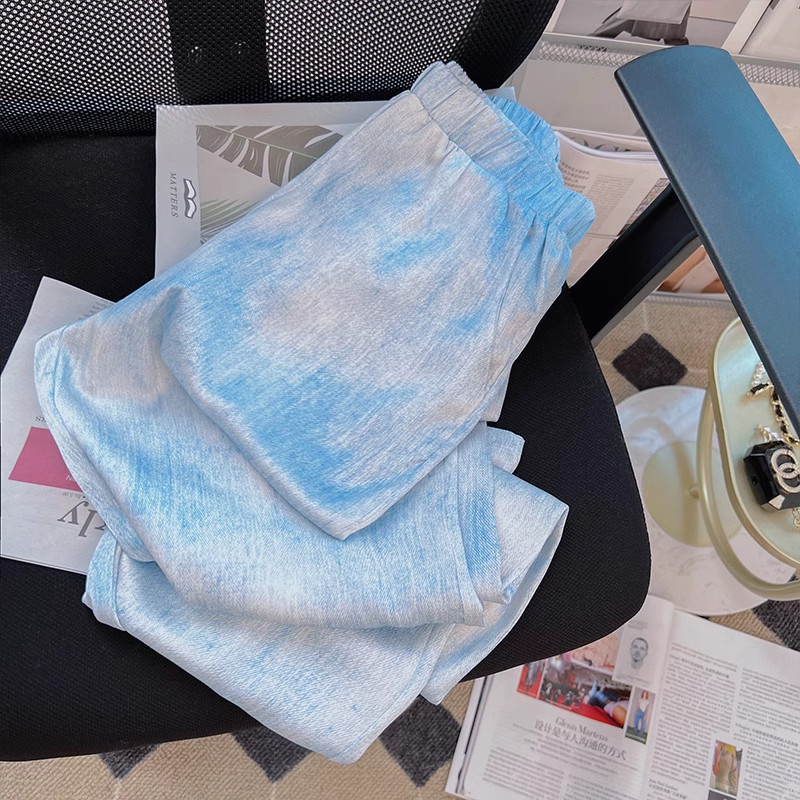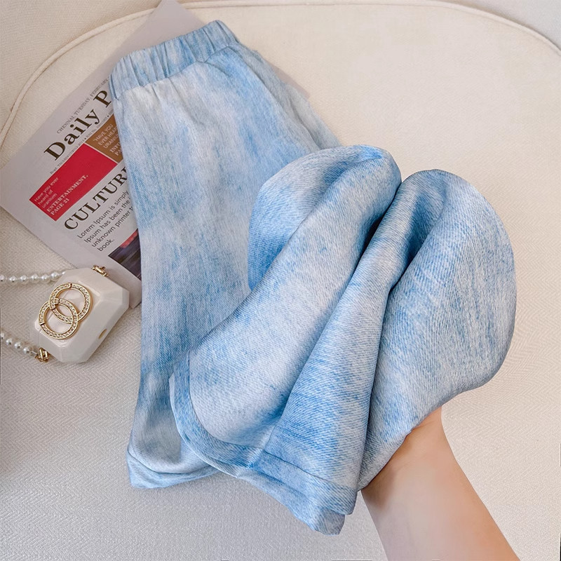 Синие шелковые тонкие штаны, повседневные брюки для отдыха, 2024 года, высокая талия, подходят для подростков