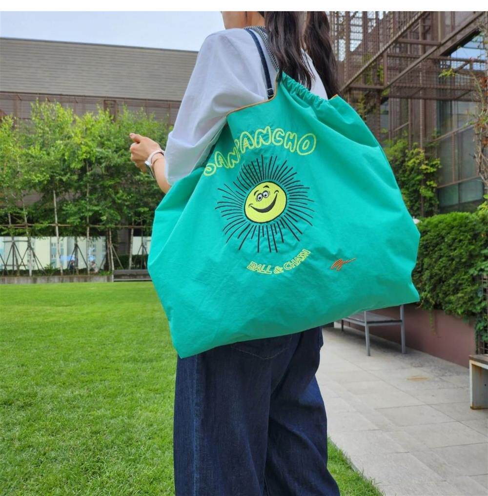 Японский вместительный и большой шоппер на солнечной энергии, сумка на одно плечо, с вышивкой