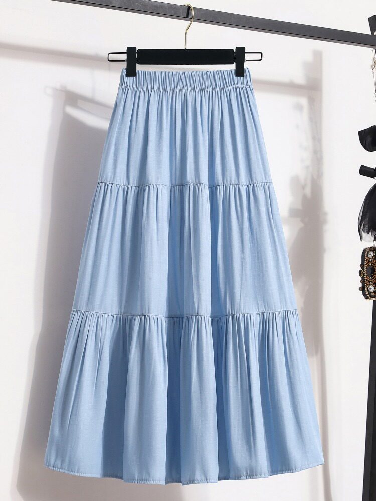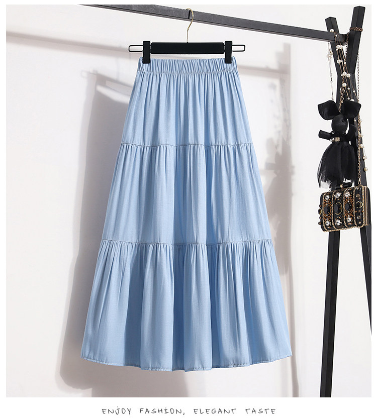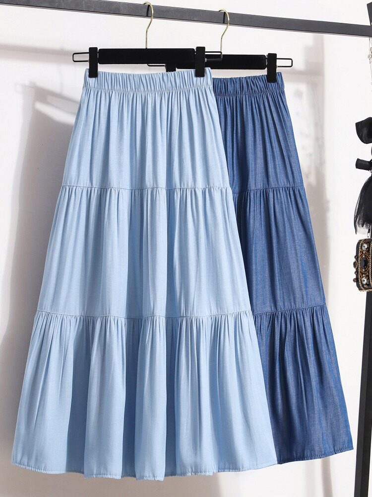 - Светло -голубой [джинсовая юбка/темперамент/жир MM большой размер]