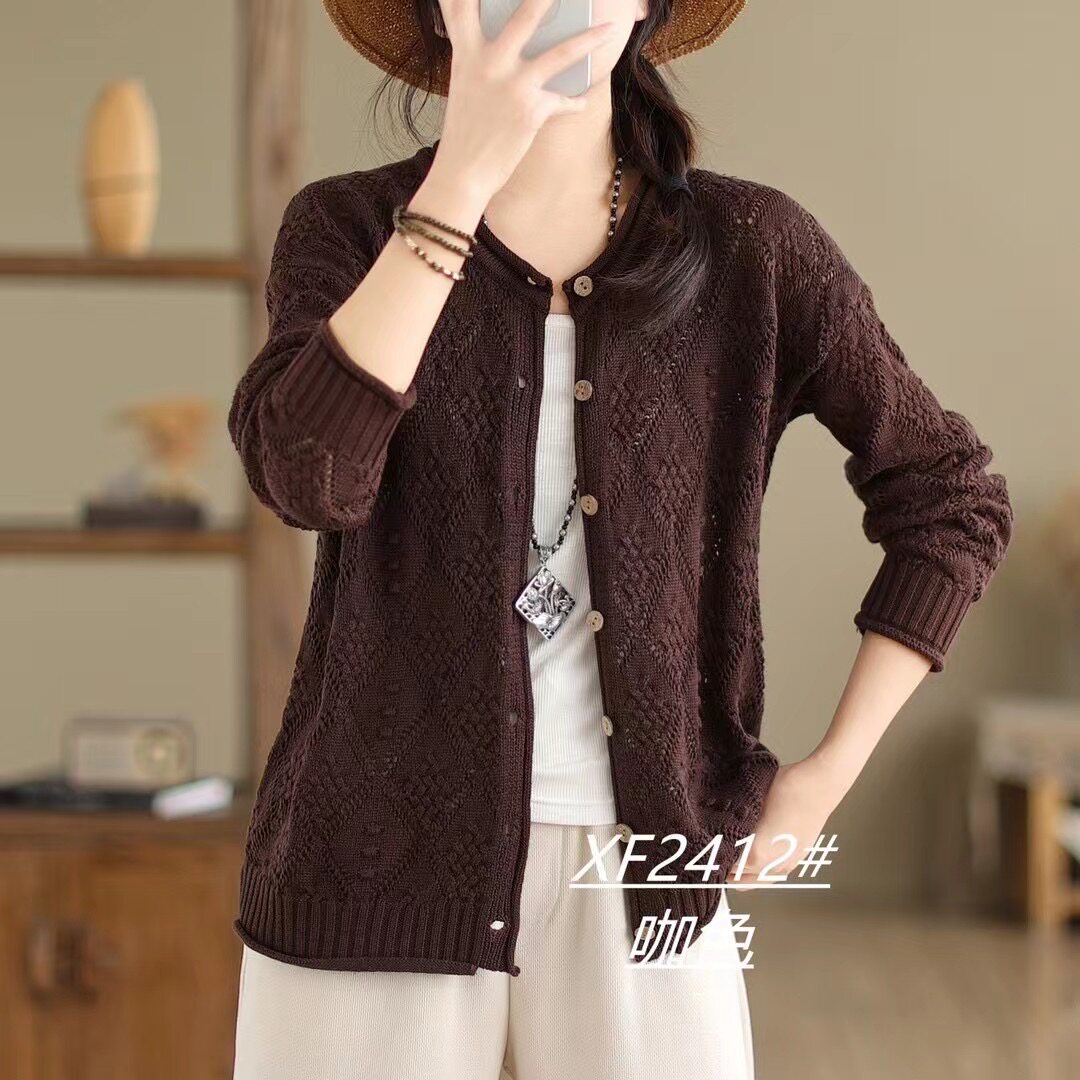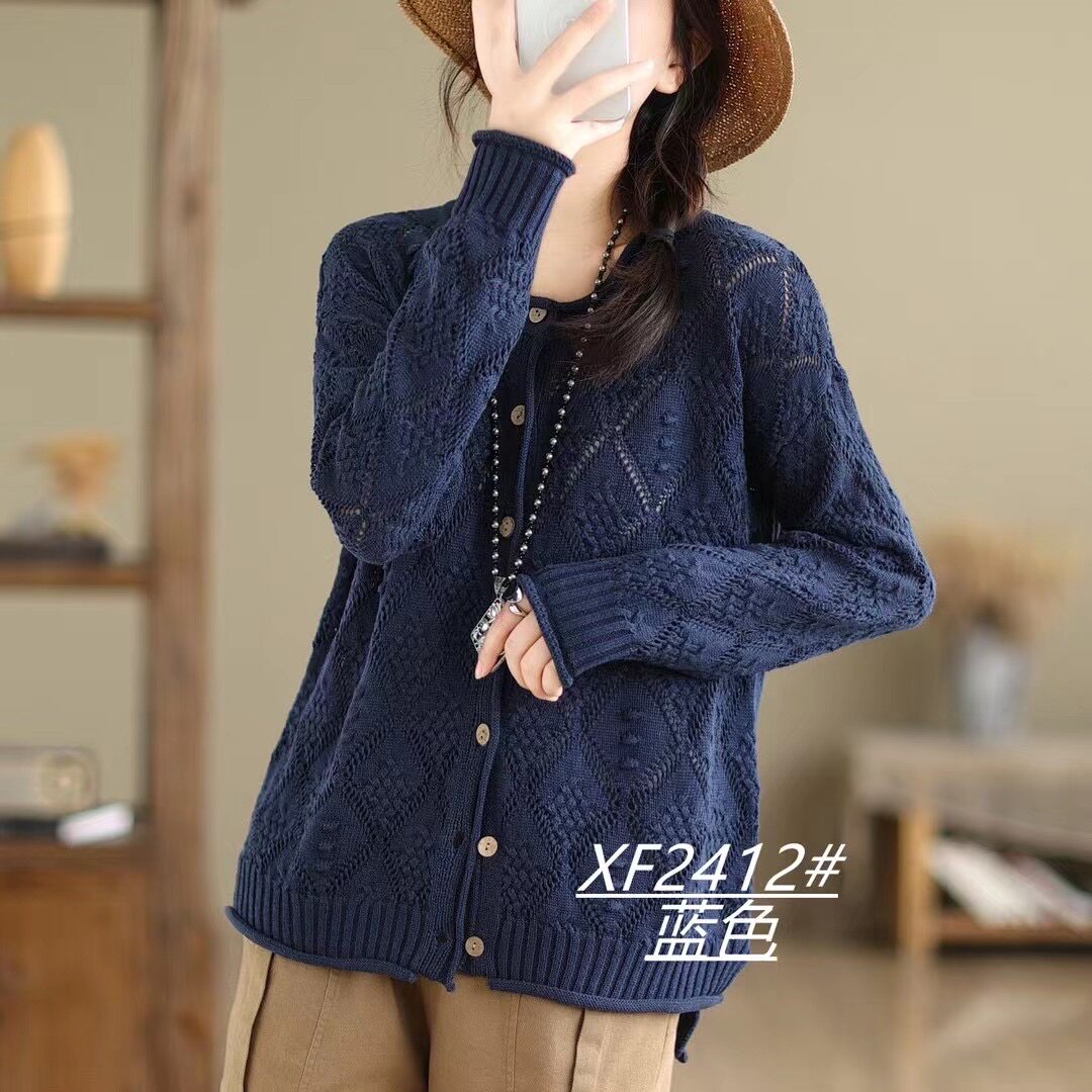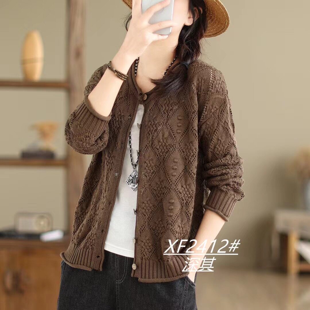 Весенний ретро лонгслив с круглым воротником, свитер, кардиган, трикотажная куртка, свободный крой