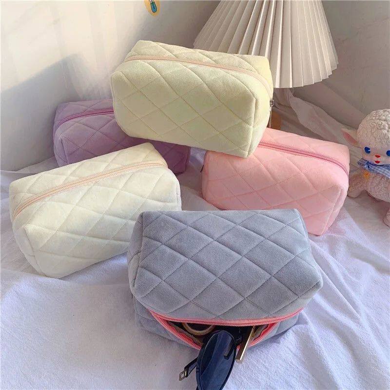 Симпатичная квадратная сетка мягкая меховая сумка для макияжа женщина Портативное путешествие