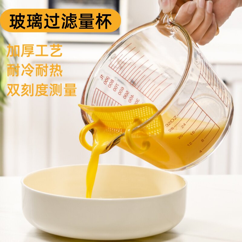 Стеклянная измерительная кружка со шкалой, ручка, термостойкий фильтр