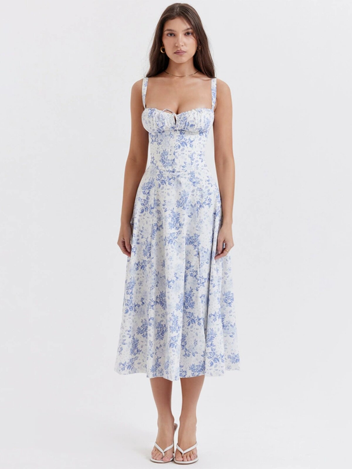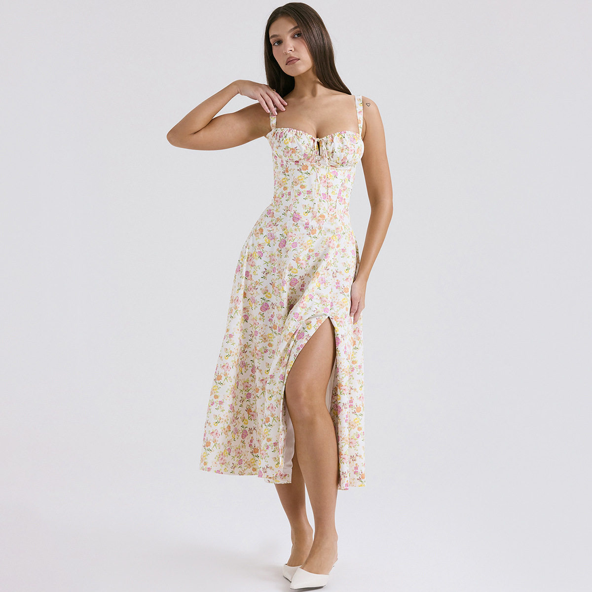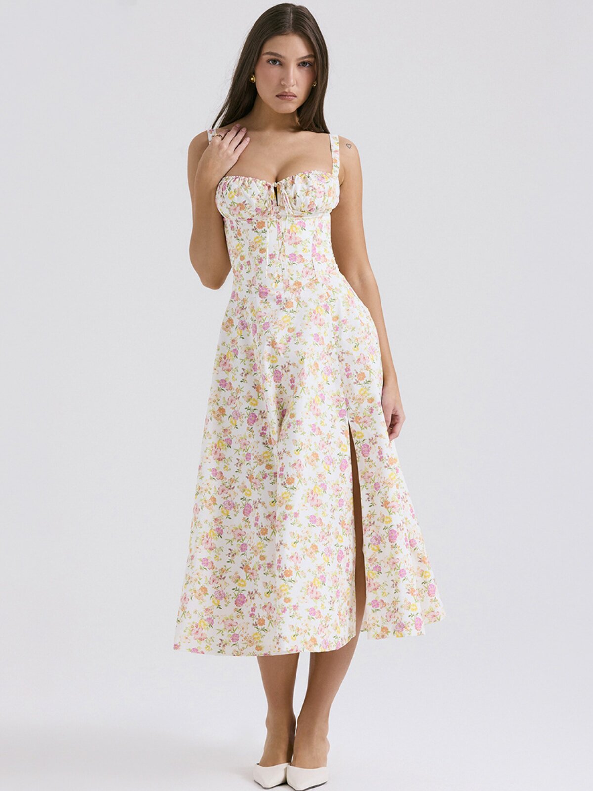 Платье, ремень, корсет, длинная юбка, цветочный принт, облегающий крой