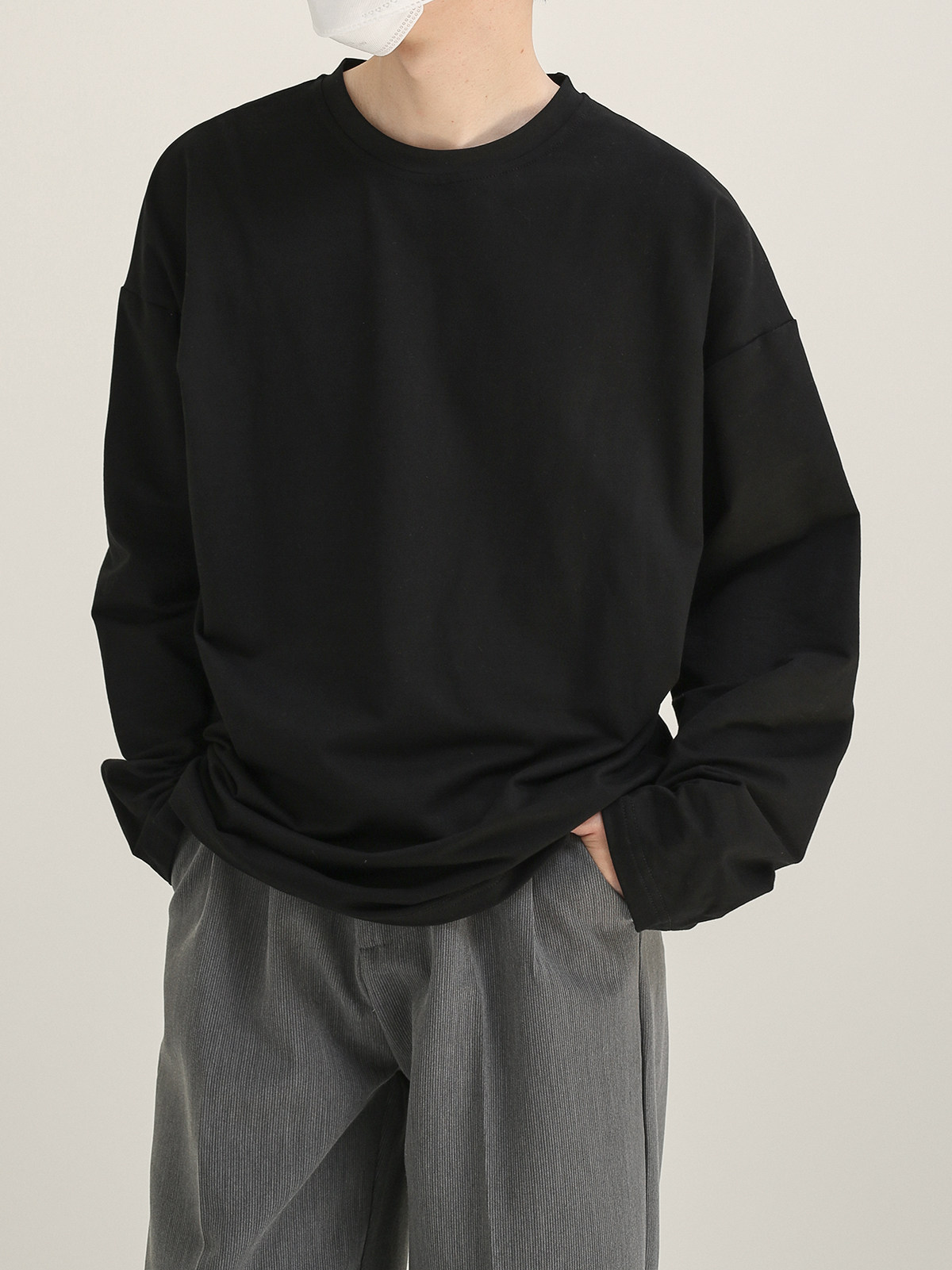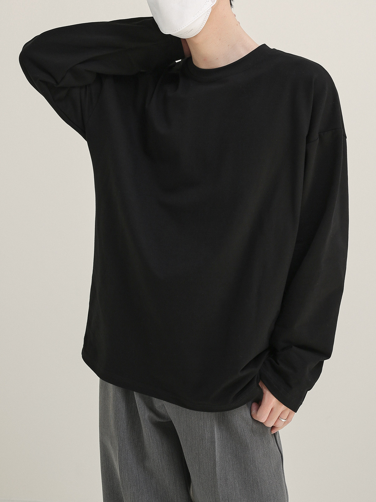 Цветной демисезонный базовый приятный телу лонгслив с круглым воротником, оверсайз