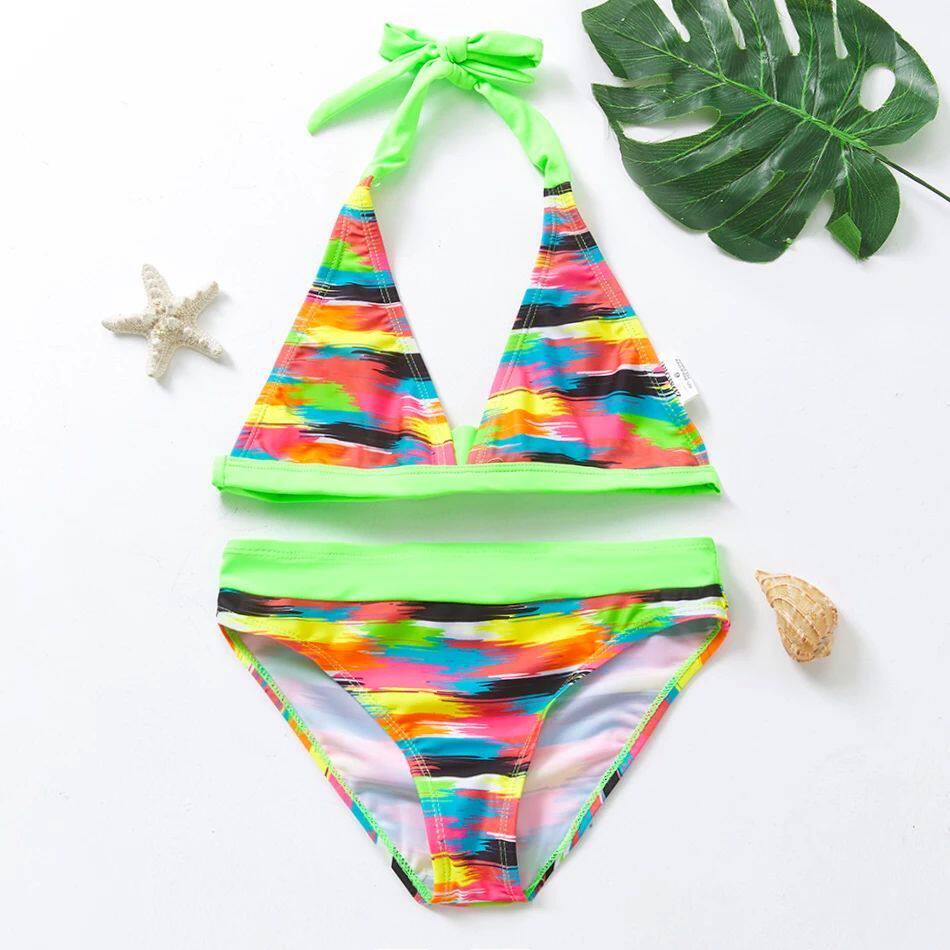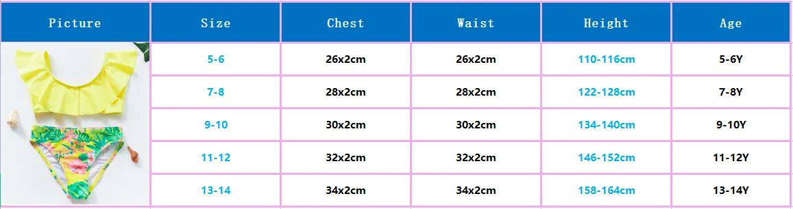 5-14y Child/Teen Girls Bikini Swimsuit Set Ruffle Flounter FL