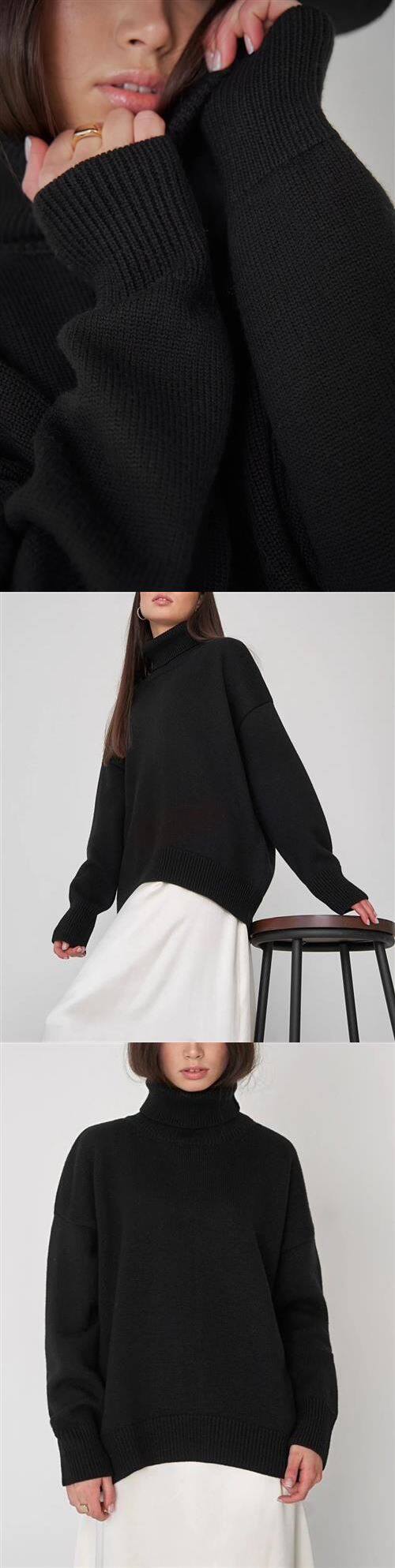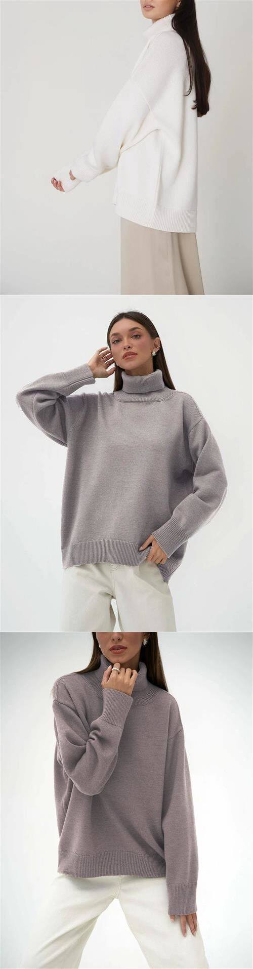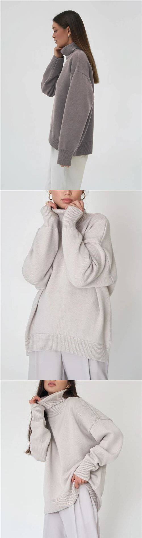 Bornladies Women Tutleneck Sweater Chic Осенняя зима густо