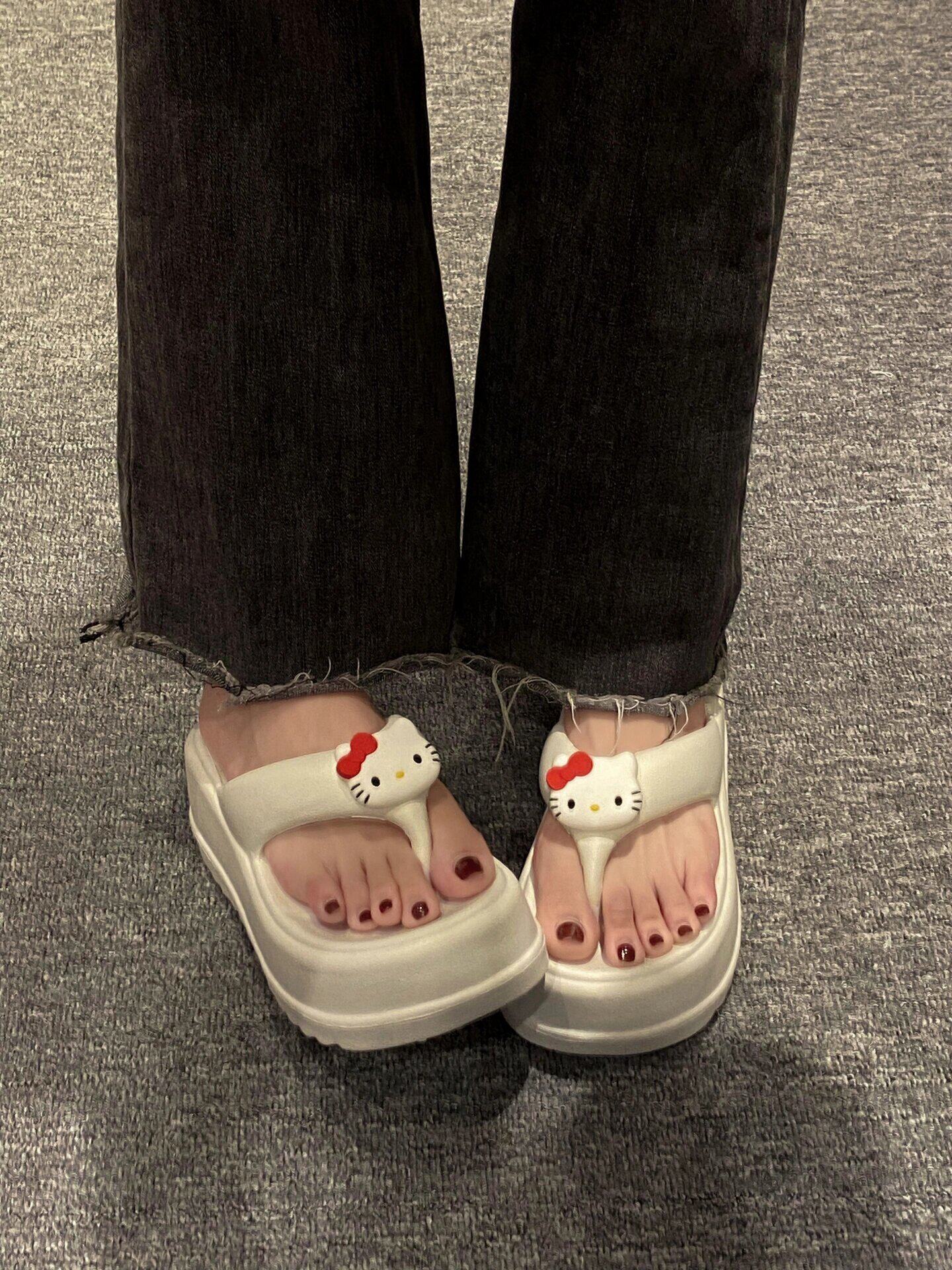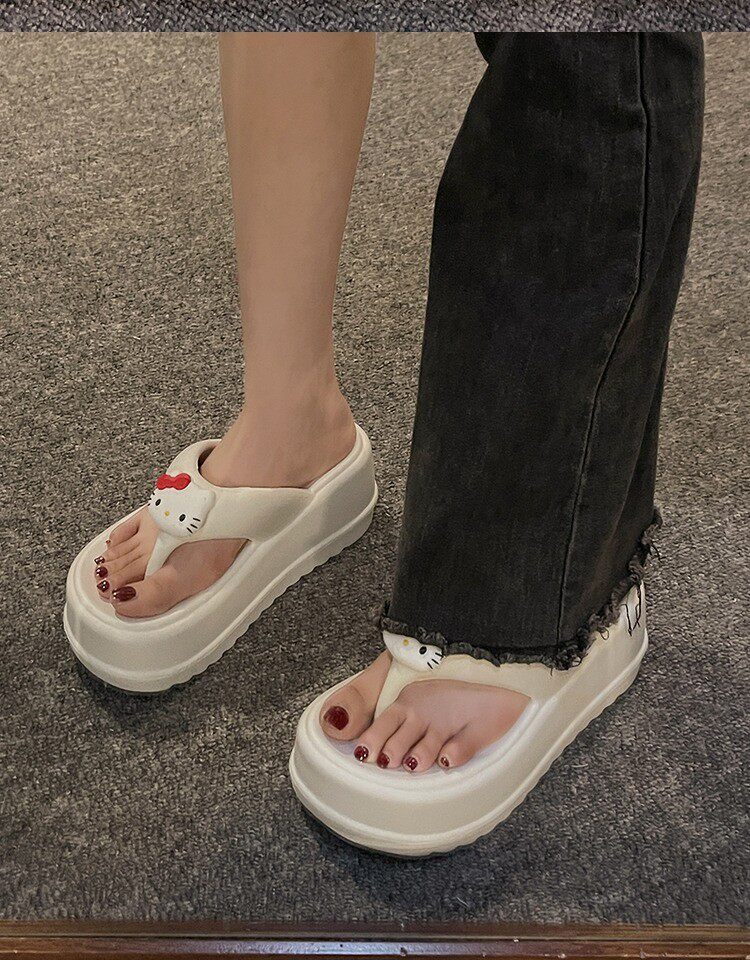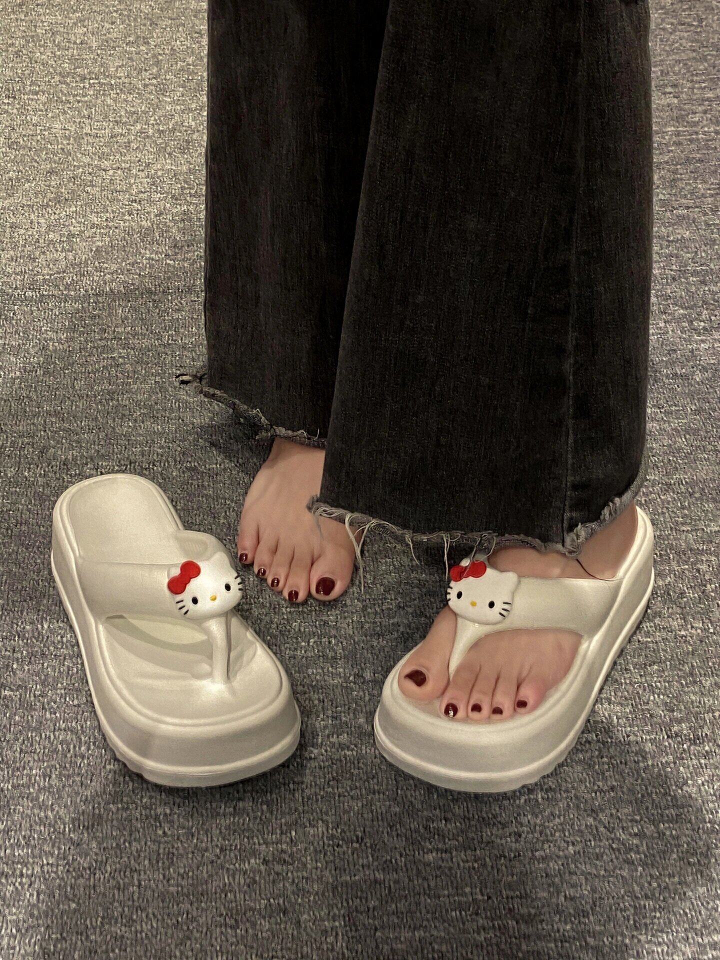 Hello Kitty, сланцы, летние нескользящие пляжные милые тапочки, пляжный стиль