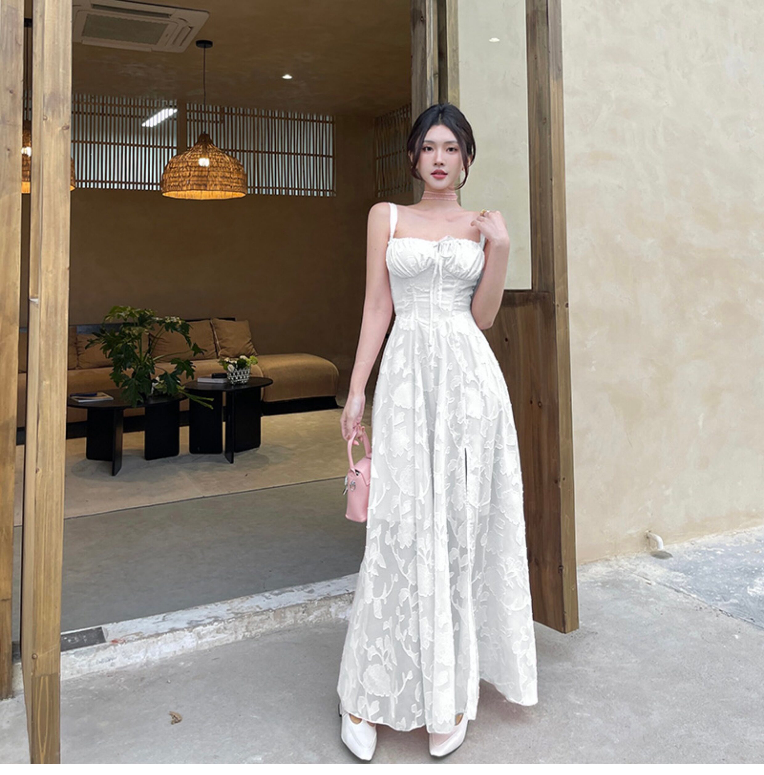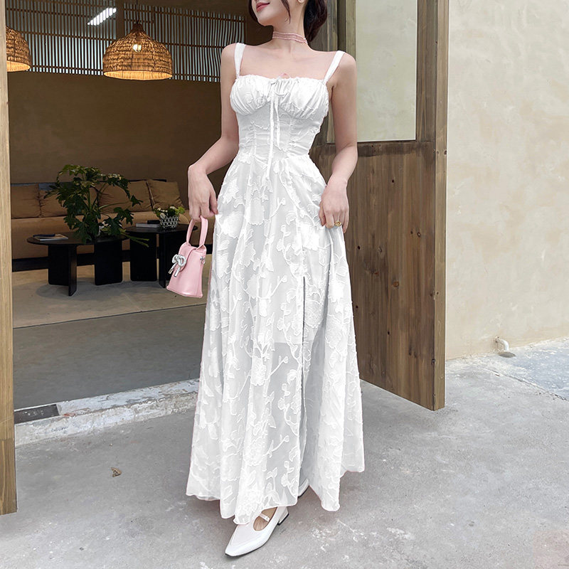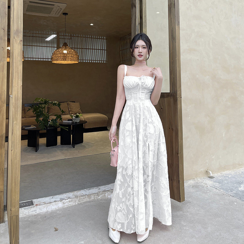 Кружевной корсет без рукавов, белое платье, длинная юбка, французский стиль, с открытой спиной