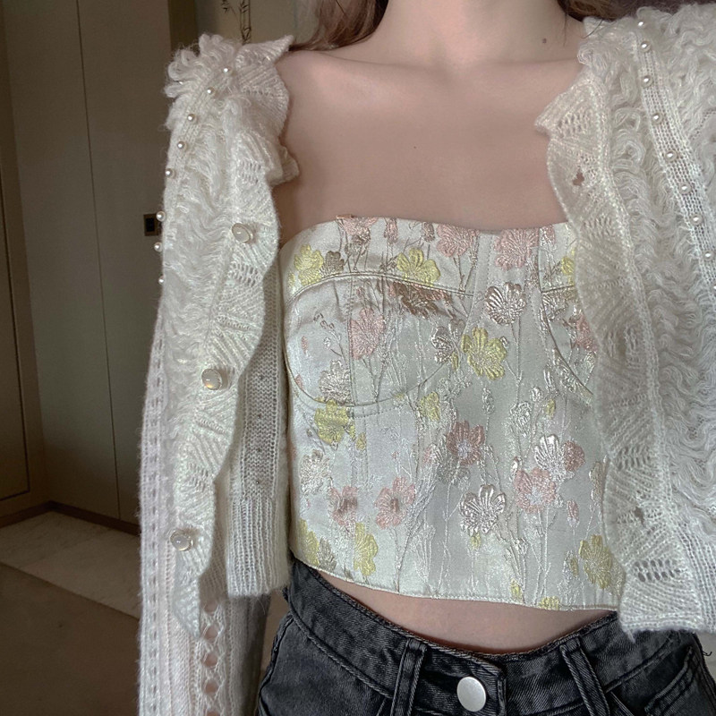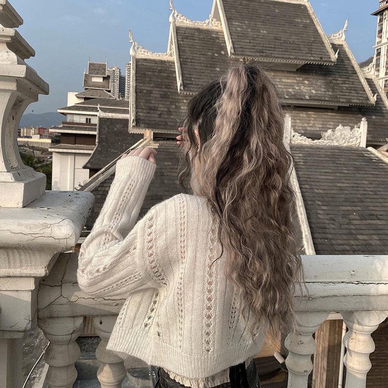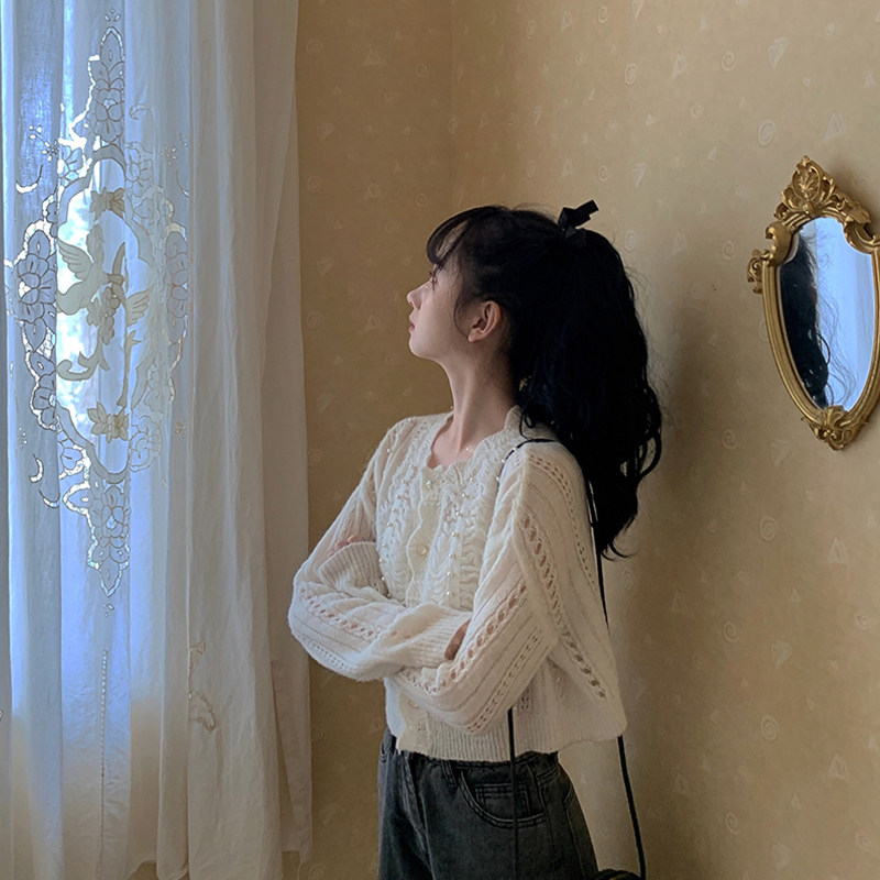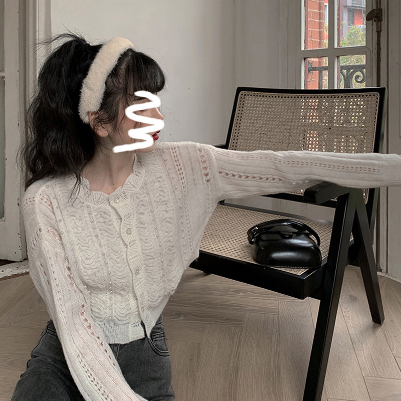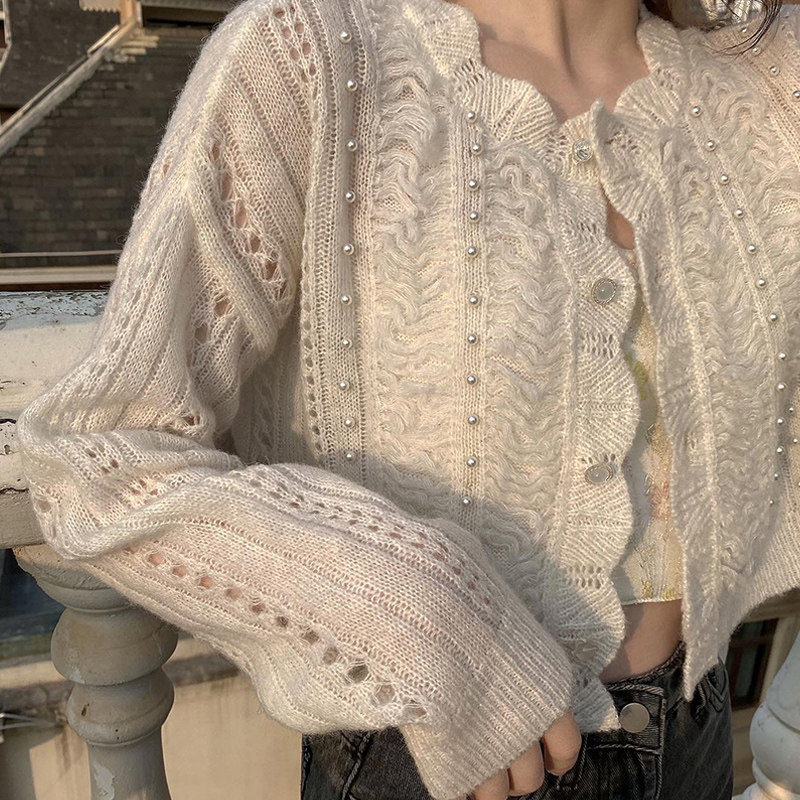 2024 Новый бисера из бисера вязаный кардиган за пределами сети красный возраст короткая куртка самка Bo Lazy Wind