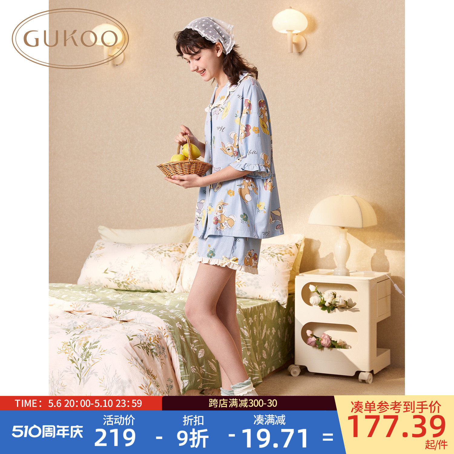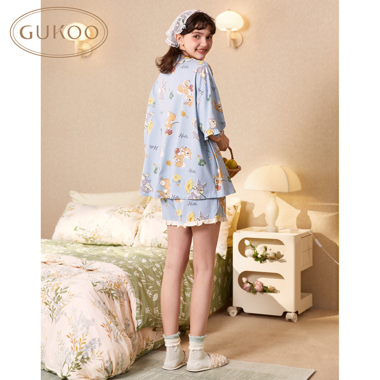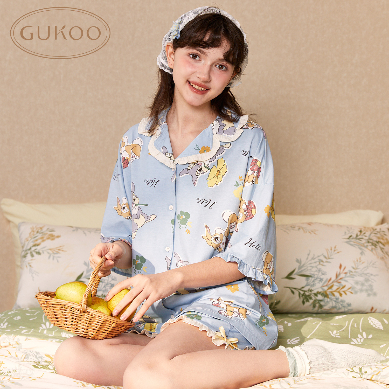 Gukoo/果壳 Летняя пижама, милый комплект, свободный крой